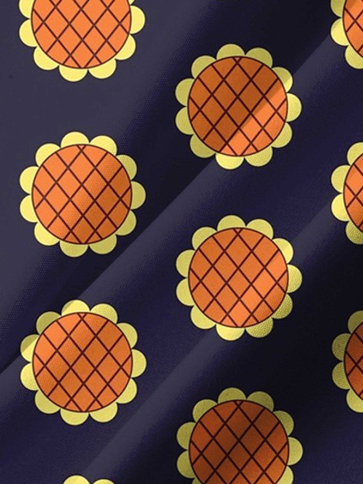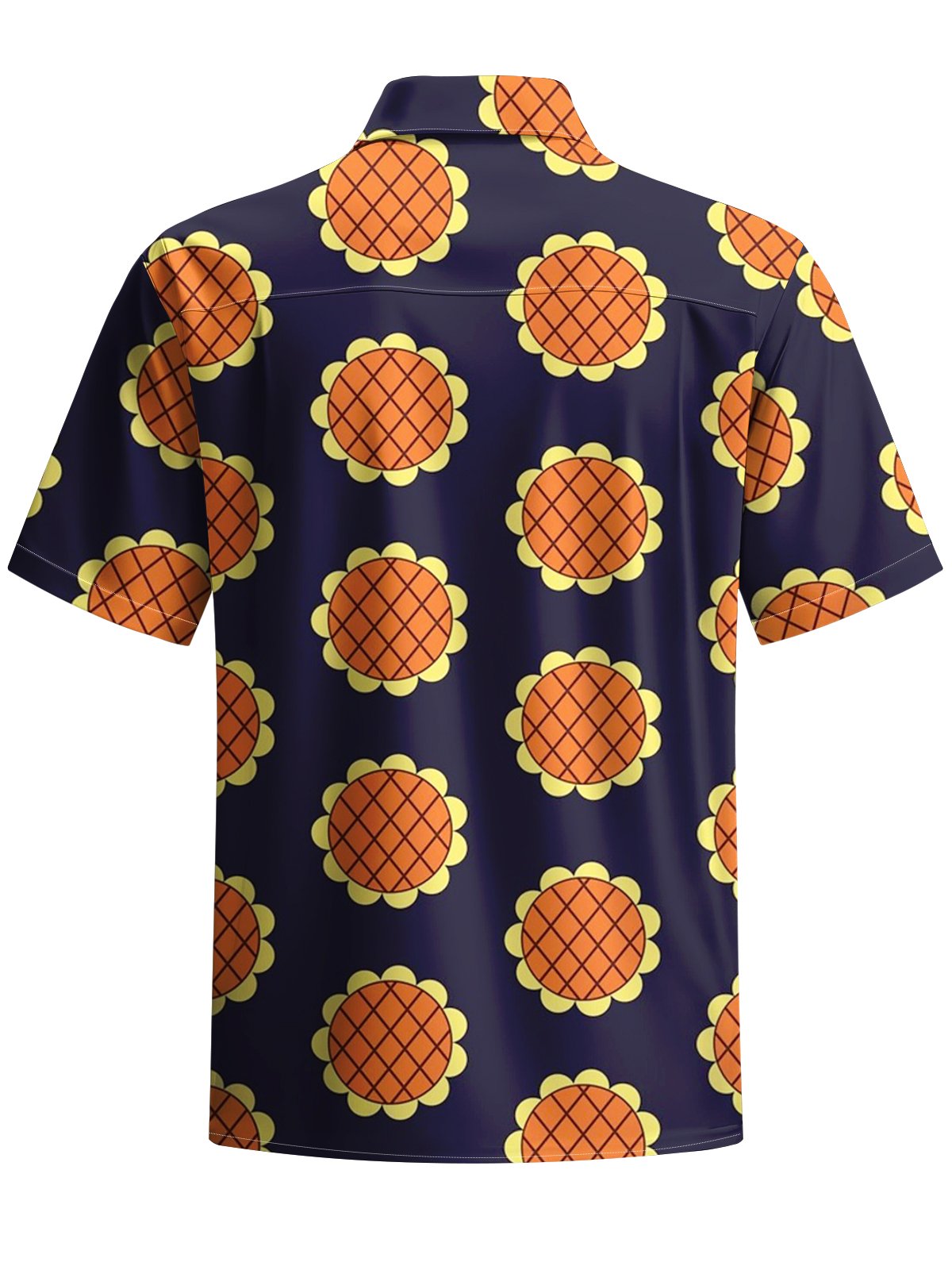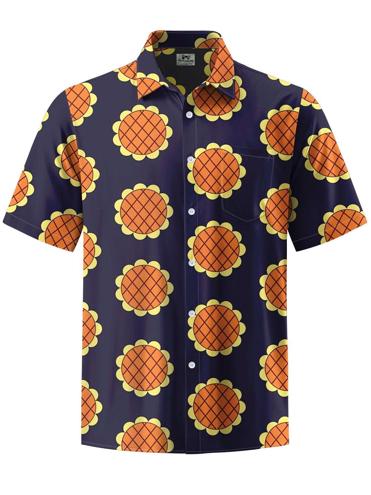Alohadaddy® Casual Sunflower Art Print Chest Pocket Men's Short Sleeve Shirt Big & Tall