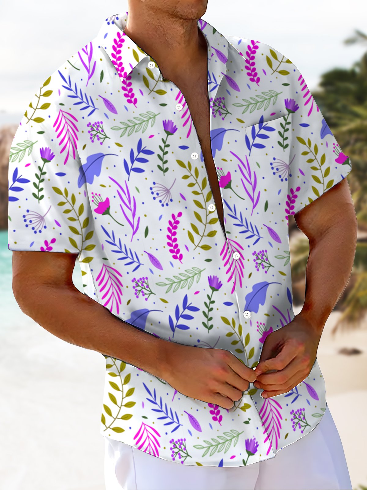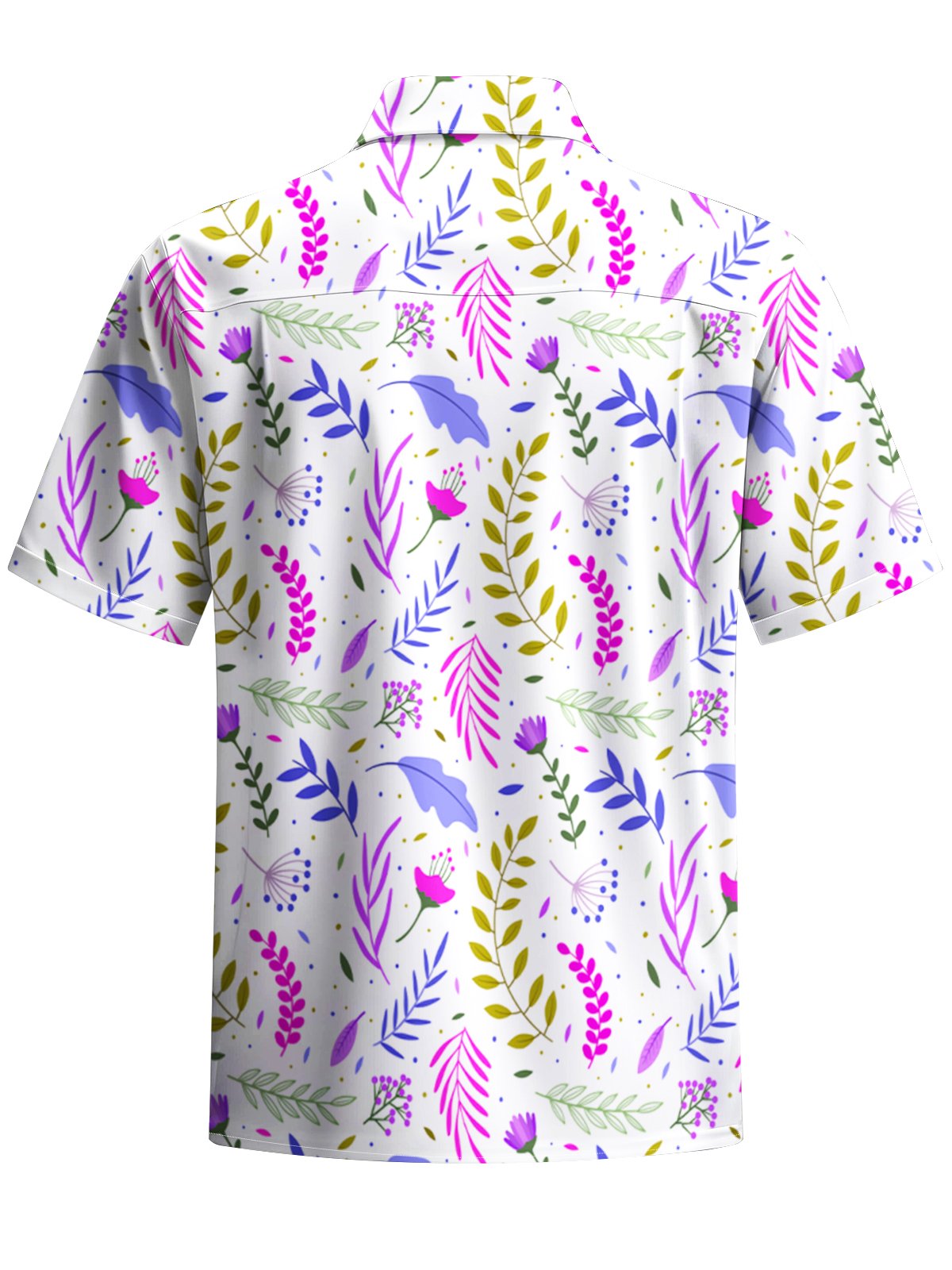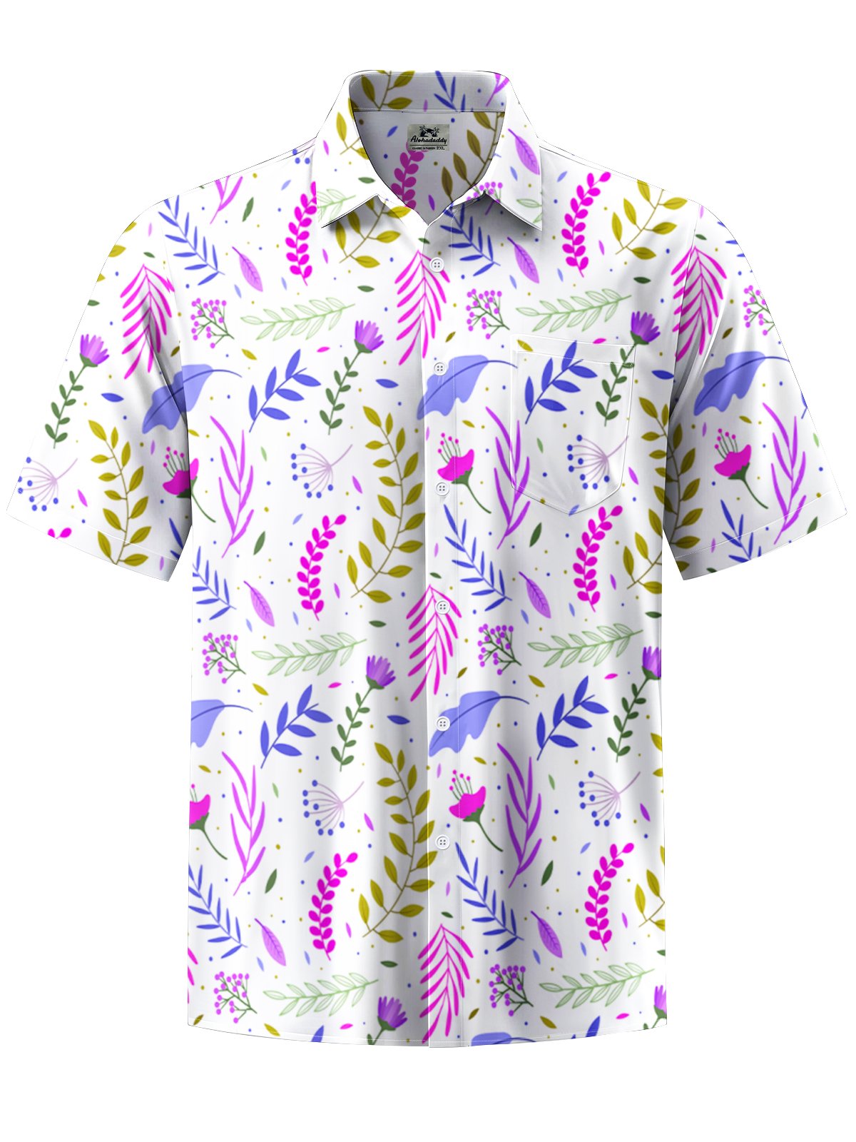 Alohadaddy® Hawaiian Leaf Art Print Chest Pocket Men's Short Sleeve Shirt Big & Tall