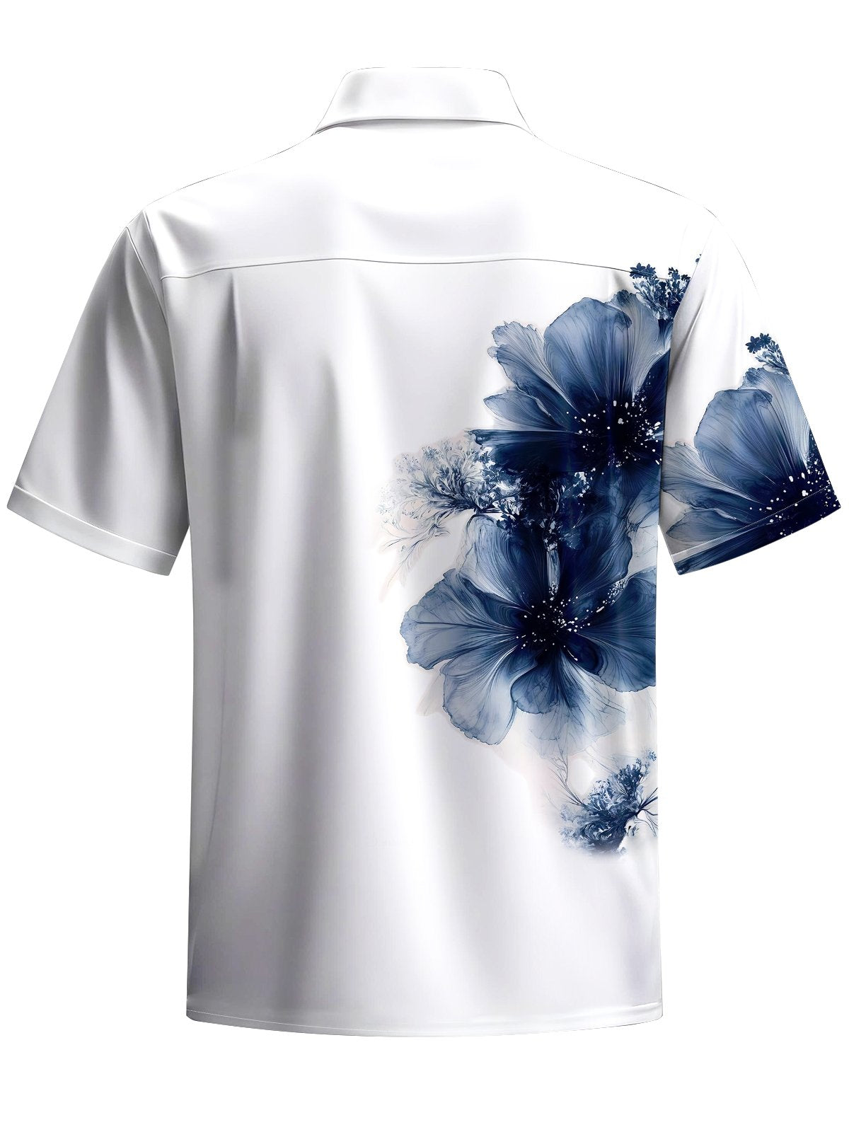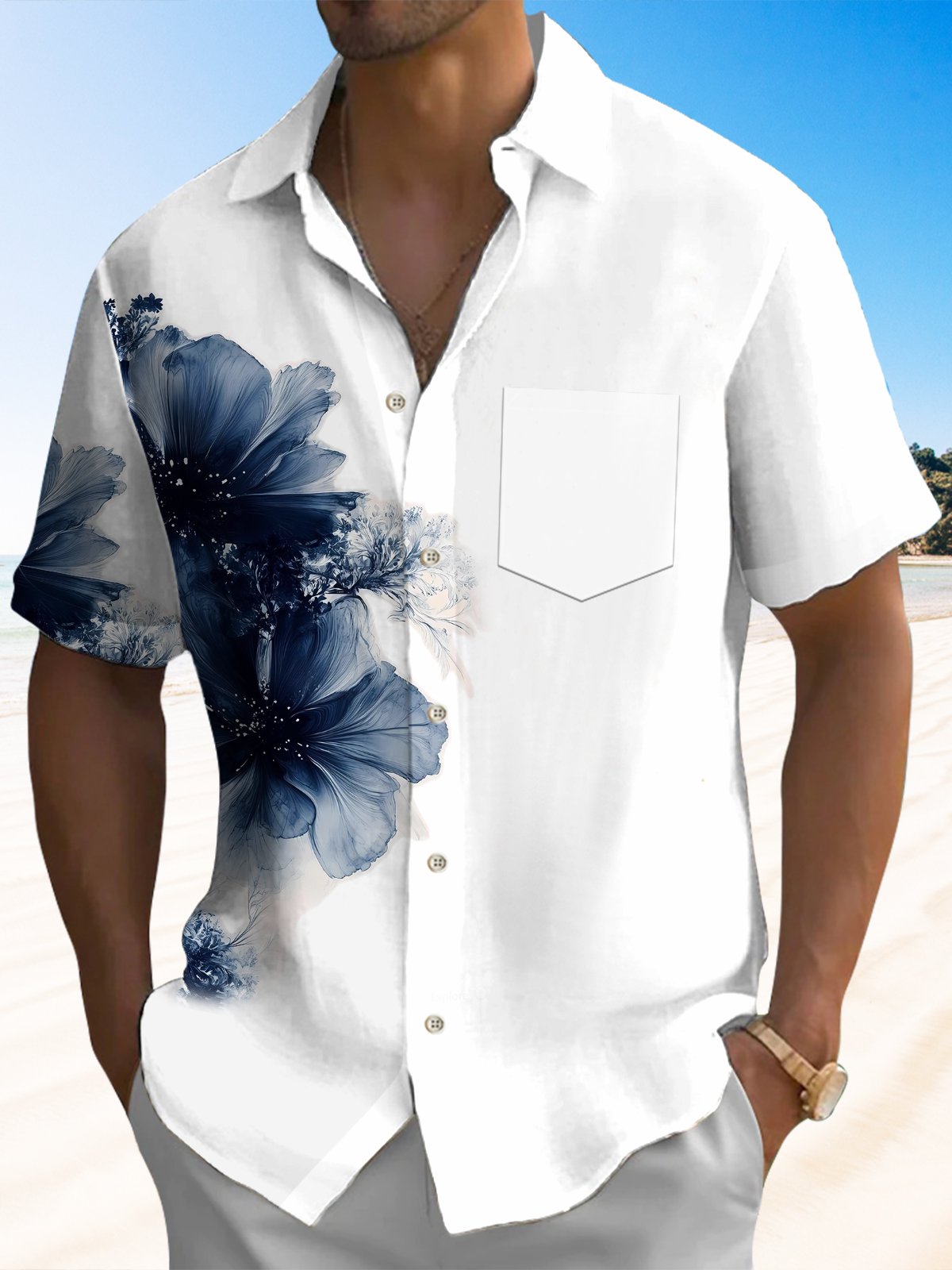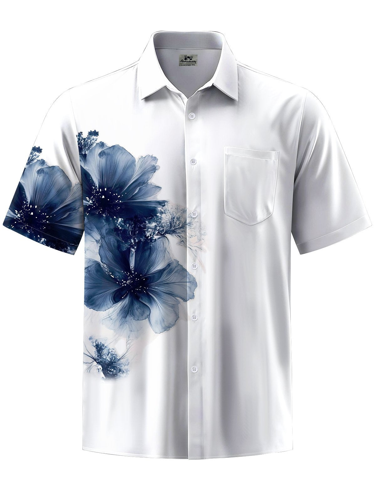 Alohadaddy® Men's Casual Floral Art Print Chest Pocket Short Sleeve Shirt Big & Tall