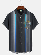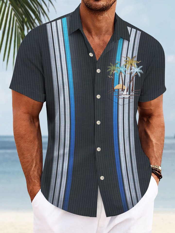 Camisa informal de manga corta para hombre, estilo años 50, con bolsillos y botones, diseño de árbol de coco y rayas geométricas de Alohadaddy