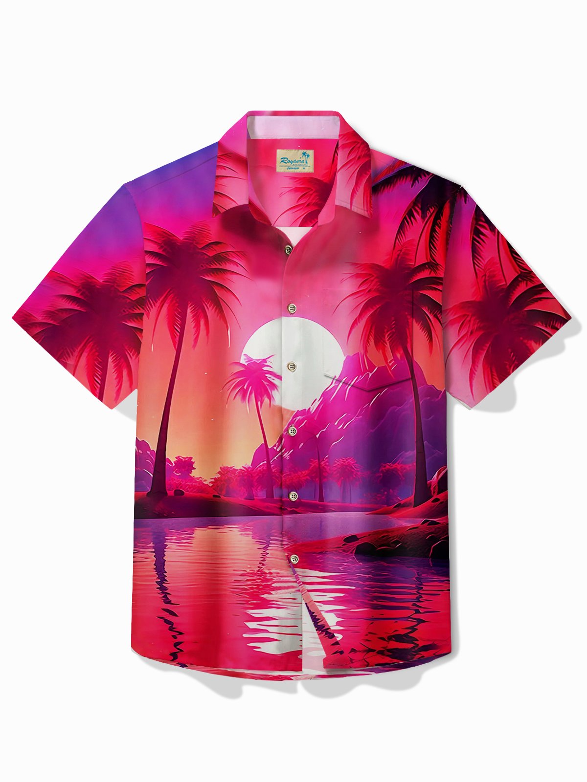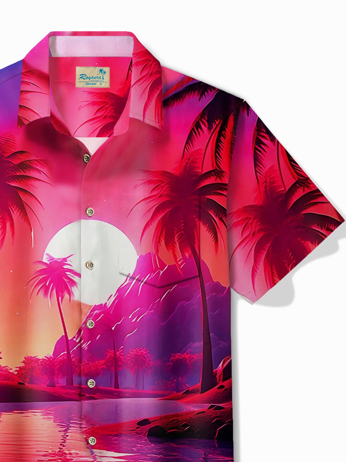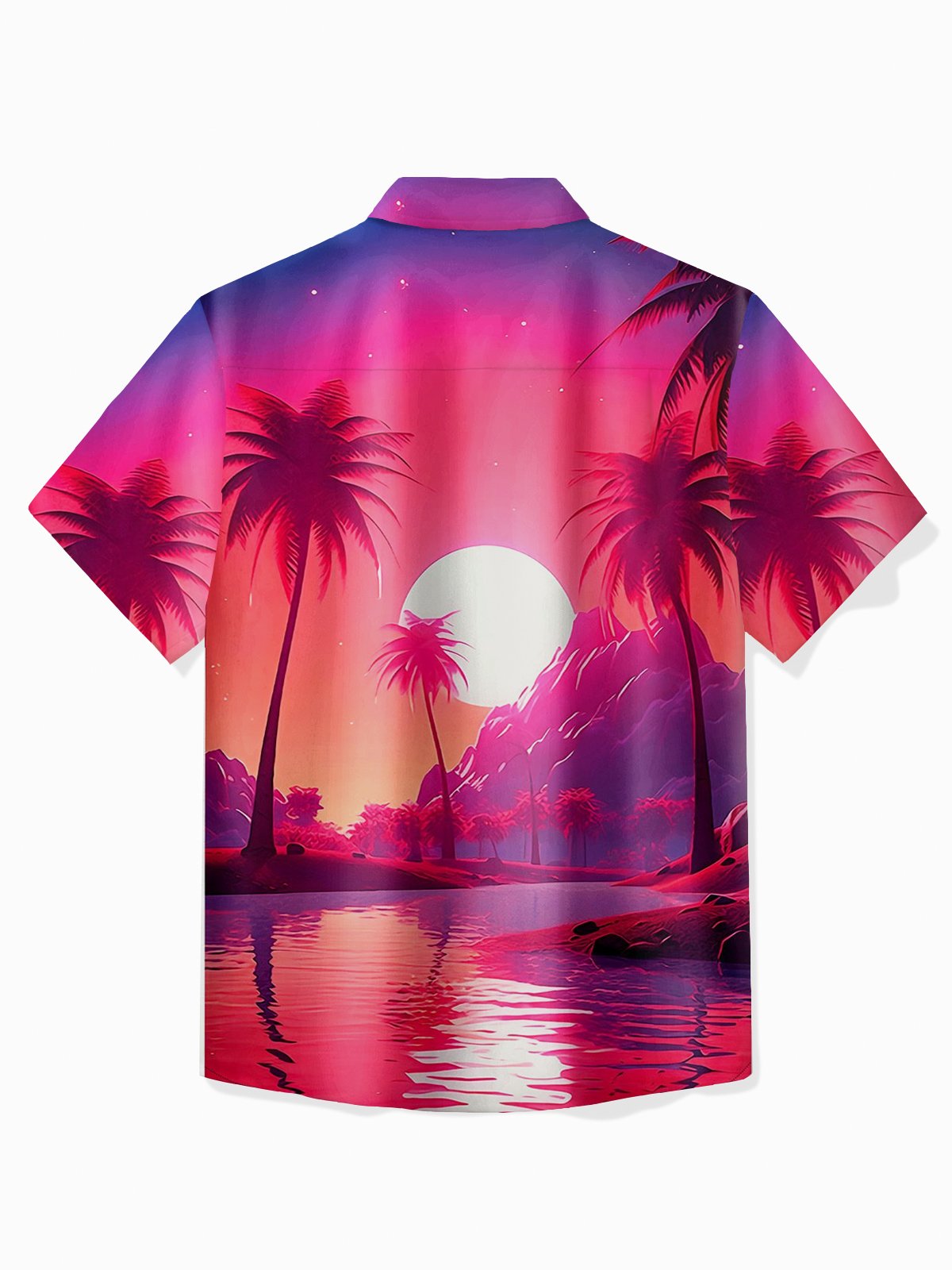 Camisa hawaiana de manga corta con solapa y bolsillo abotonado para hombre con estampado de cocoteros y coches de Alohadaddy
