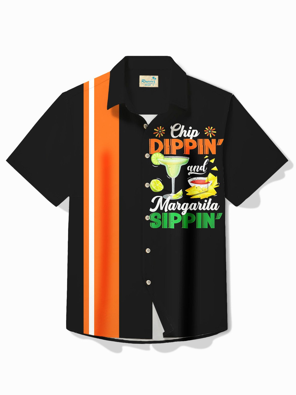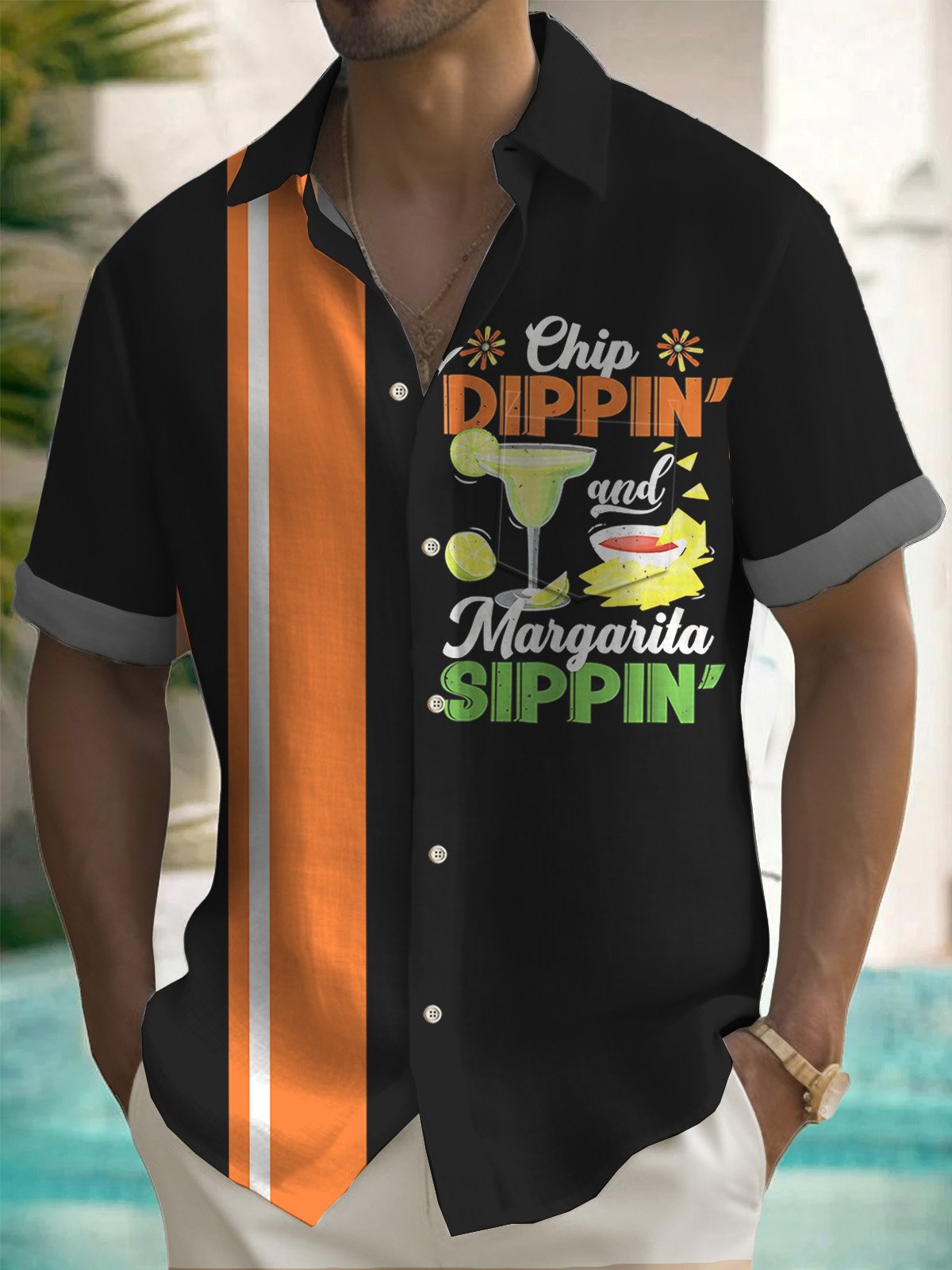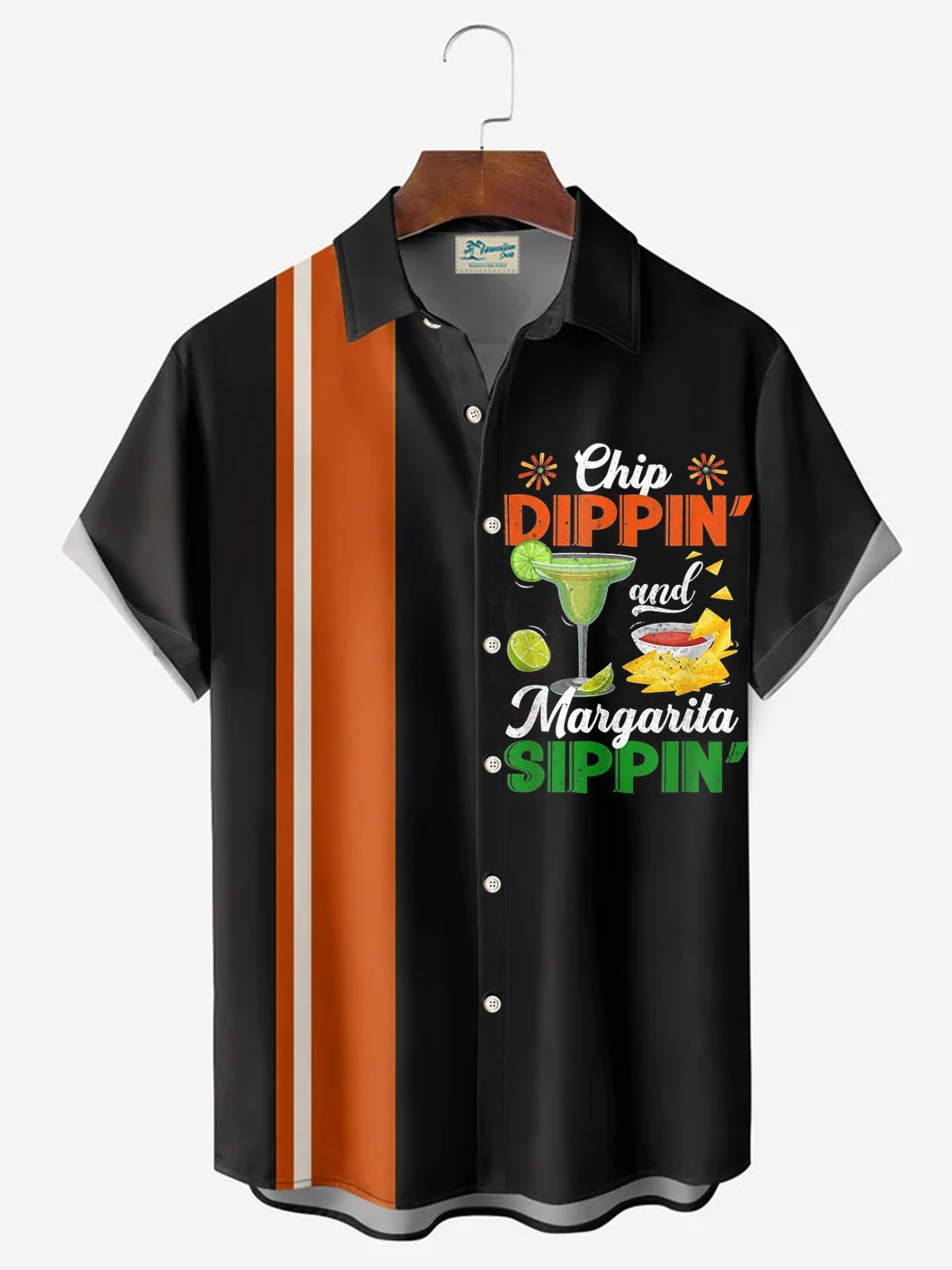 Camisa de manga corta con bolsillo abotonado y estampado de tequila y cóctel festivo Alohadaddy para hombre