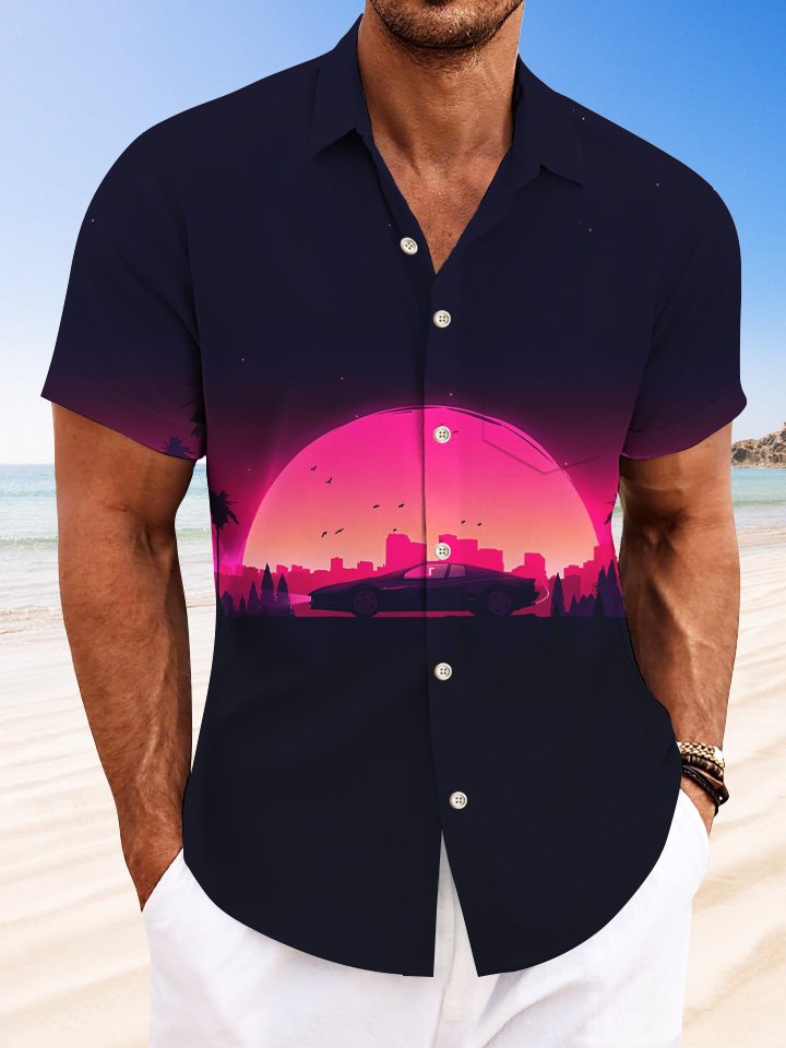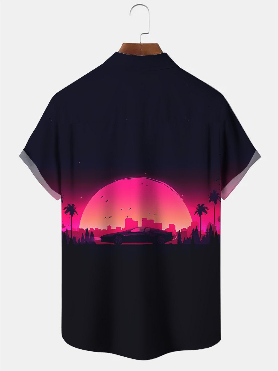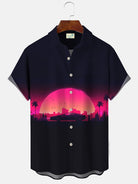 Camisa informal de manga corta con botones para hombre, diseño de árbol de coco y puesta de sol, de Alohadaddy