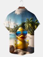 Alohadaddy Casual Collection Vacation Hawaiian Little Yellow Duck Print Art Button Cardigan Pocket Polyester Stretch Short Sleeve Shirt