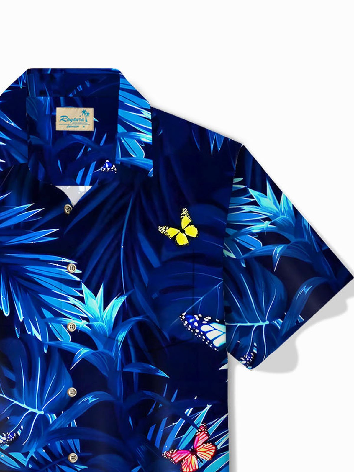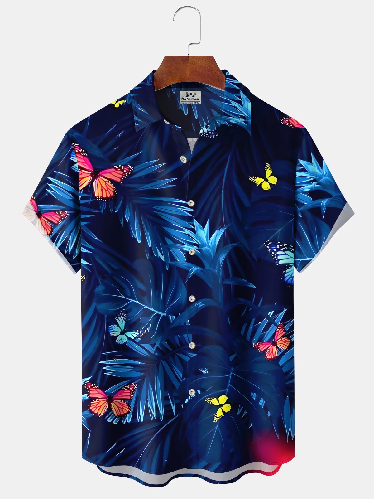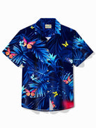 Camisa de manga corta con bolsillo abotonado para hombre con estampado botánico de mariposas hawaianas de Alohadaddy