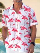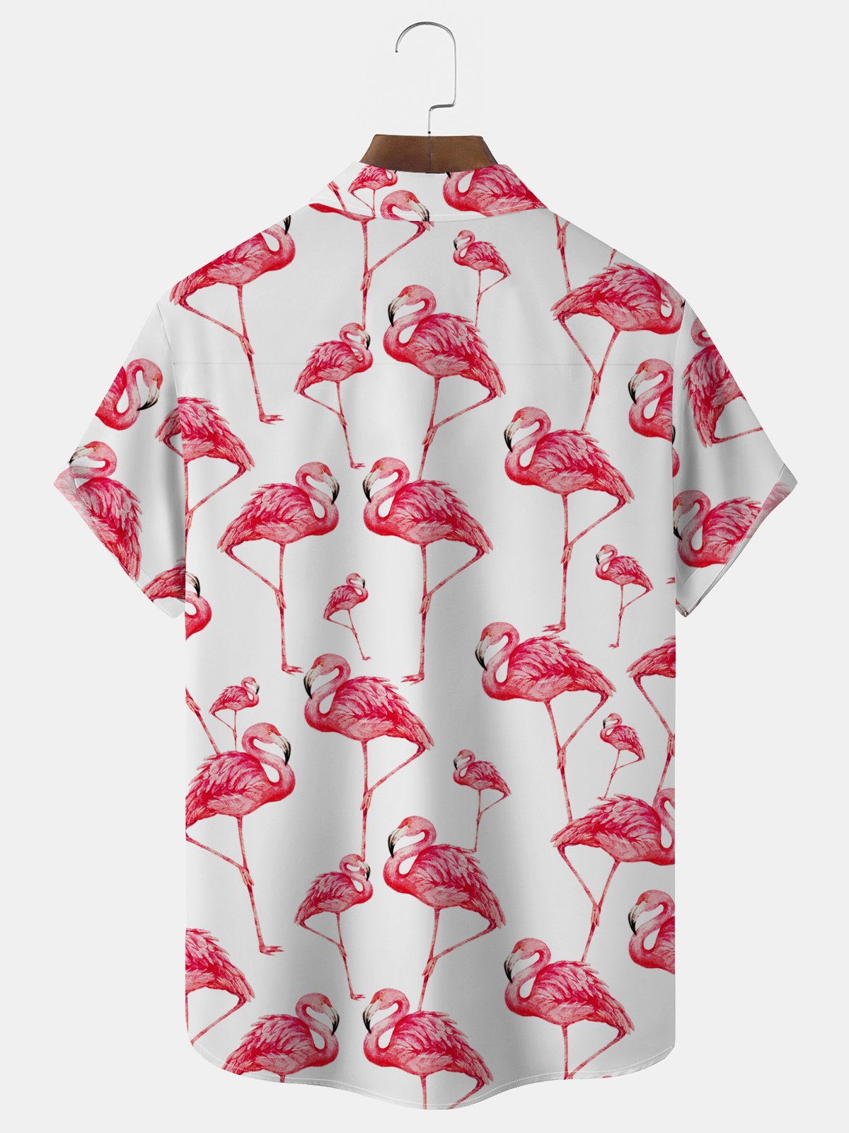 Camisa con bolsillos abotonados para hombre con estampado de flamencos hawaianos de Alohadaddy