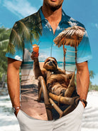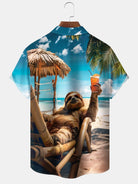 Alohadaddy Hawaiian Sloth Vacation Print Art Button Cardigan Pocket Stretch Large Size Long Short Sleeve Shirt