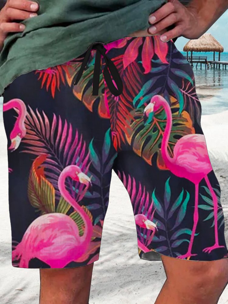 Bañador Alohadaddy con estampado de flamencos para hombre, pantalones cortos hawaianos de vacaciones para hombres grandes y altos, Aloha