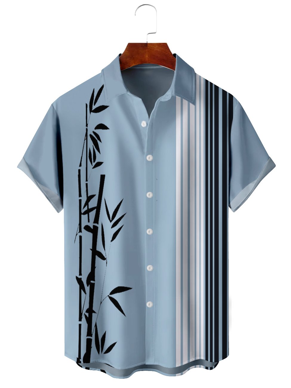 Camisas informales de mezcla de algodón con estampado de bambú en azul claro de Alohadaddy en tallas grandes