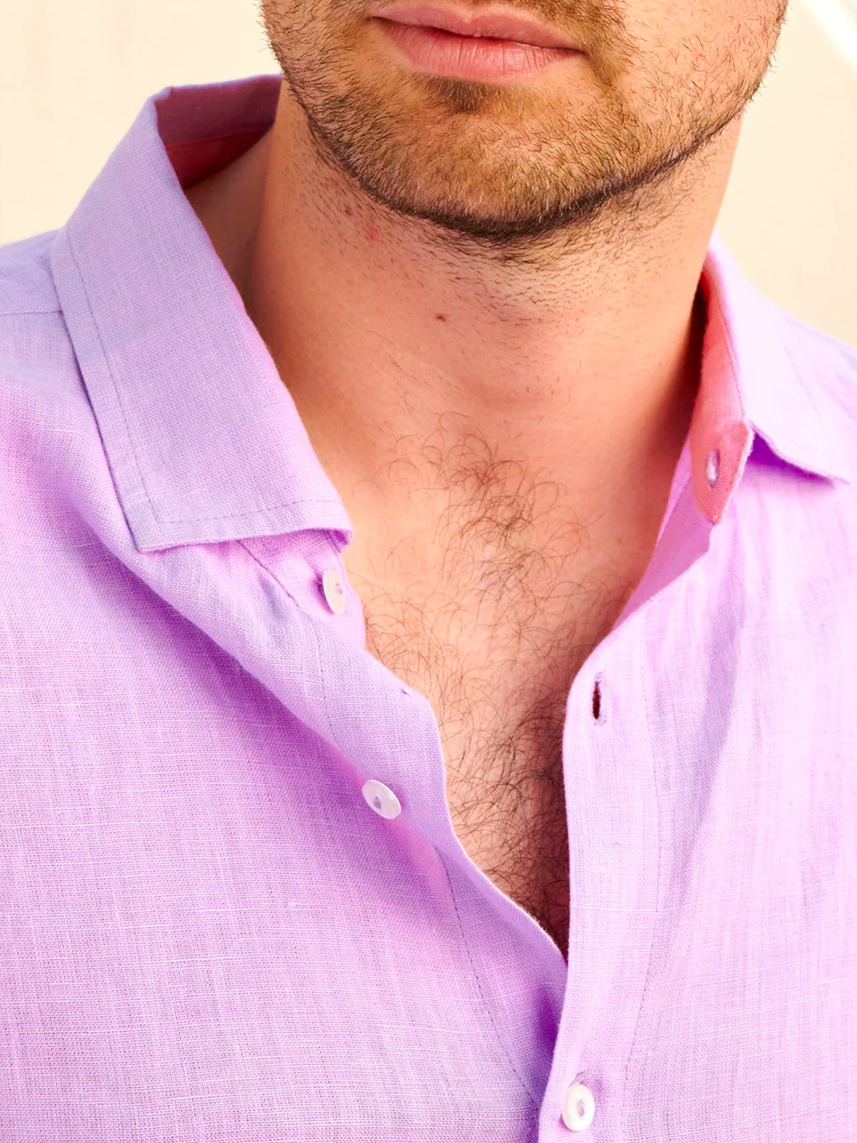 Camisas de manga larga moradas para vacaciones en la playa de Alohadaddy Camisas de campamento con botones Aloha cómodas y transpirables con textura