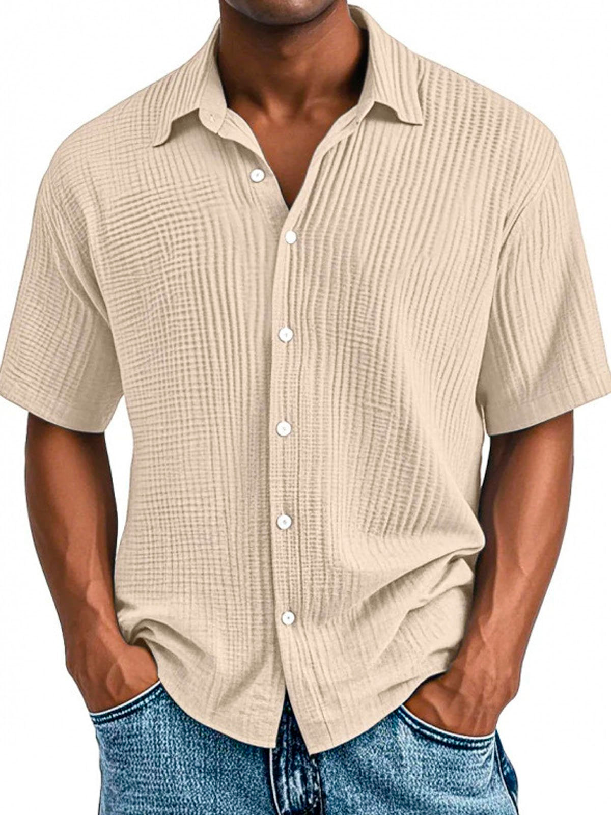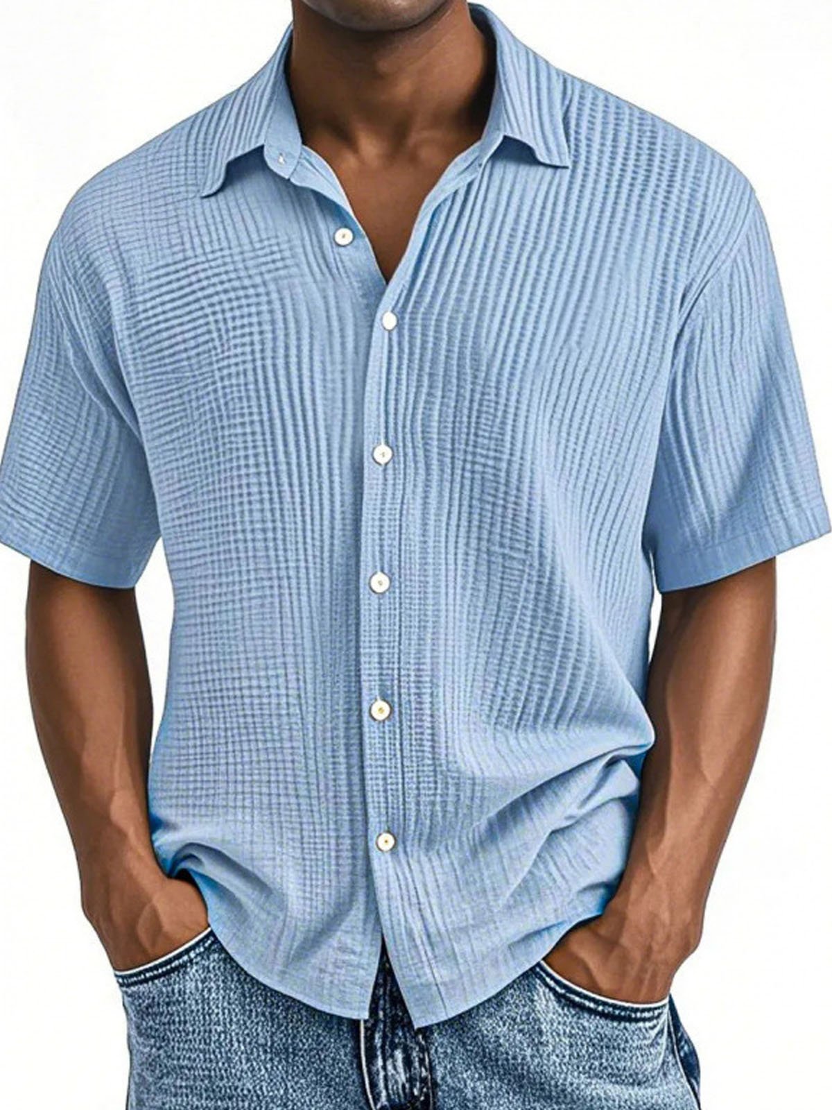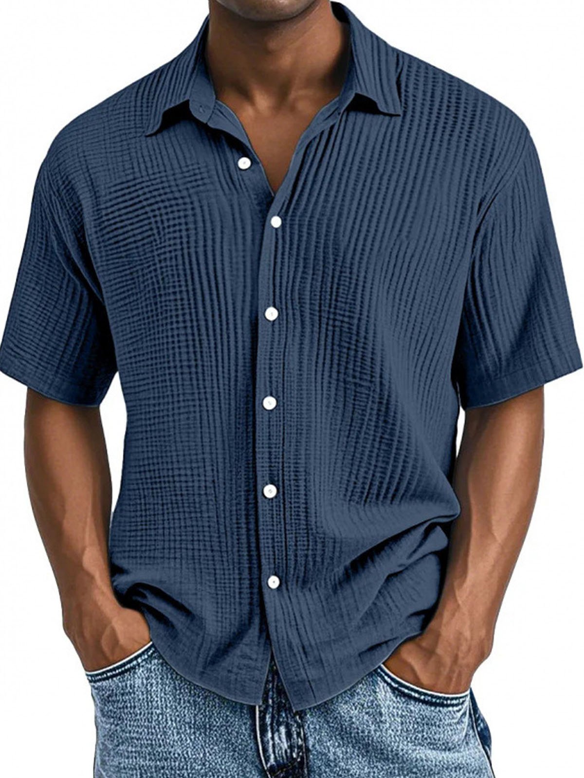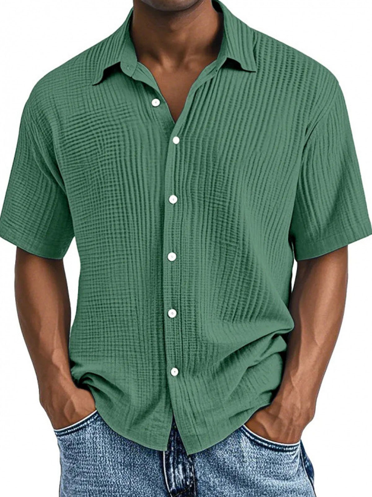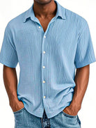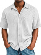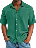 Alohadaddy® Basics Seersucker Pleated Men's Button-Down Short Sleeve Lapel Shirt Big & Tall