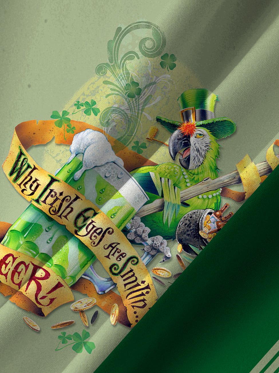 Camisas informales de talla grande con estampado de cerveza y loro del Día de San Patricio de Alohadaddy
