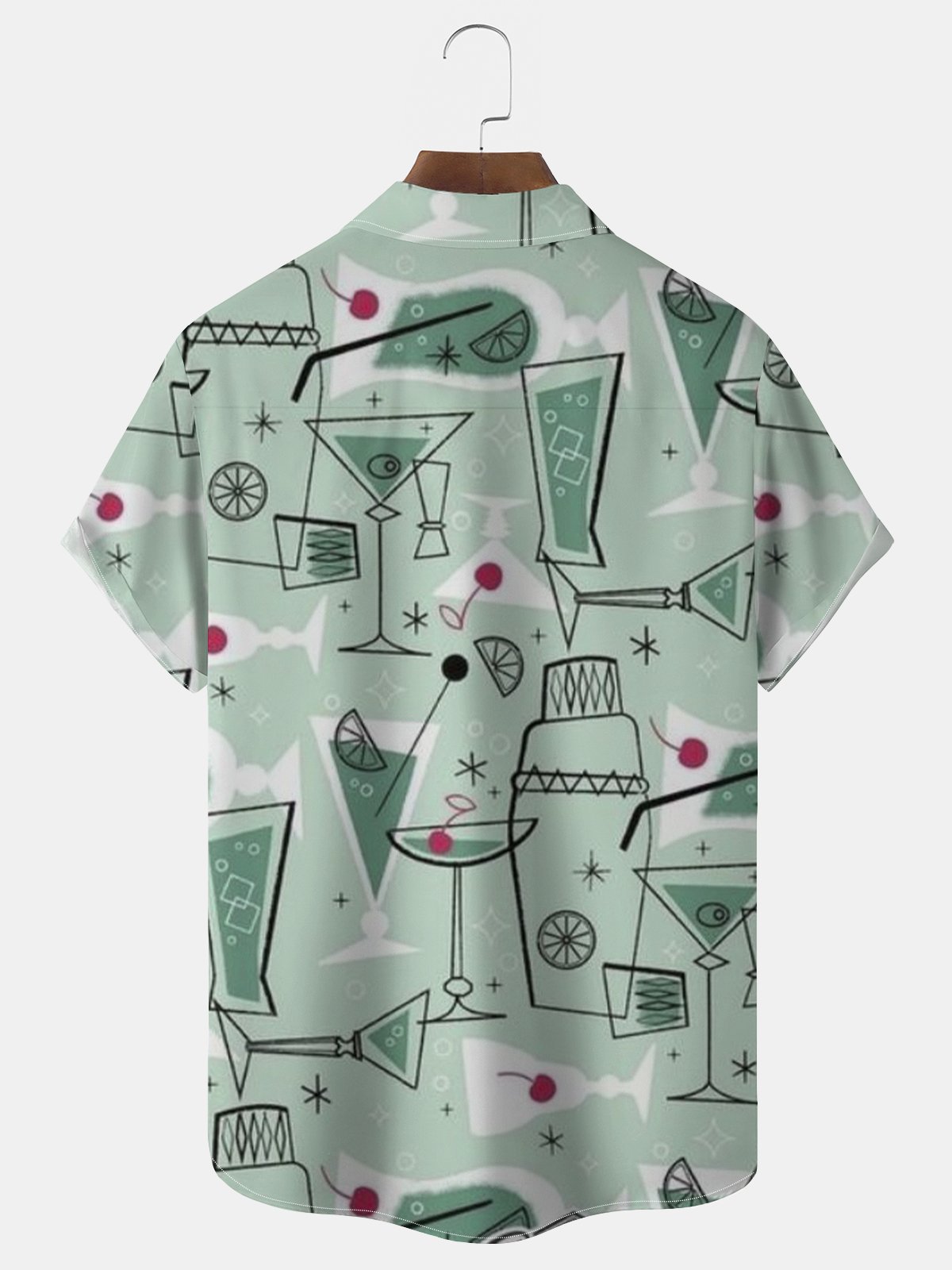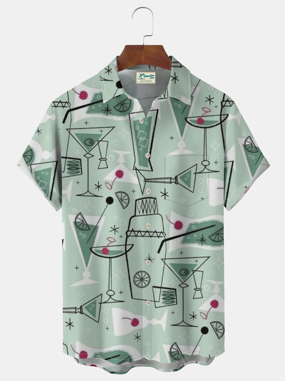 Alohadaddy® Retro Geometric Cocktail Print Men's Lapel Pocket Short Sleeve Shirt Big&Tall