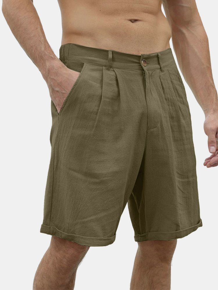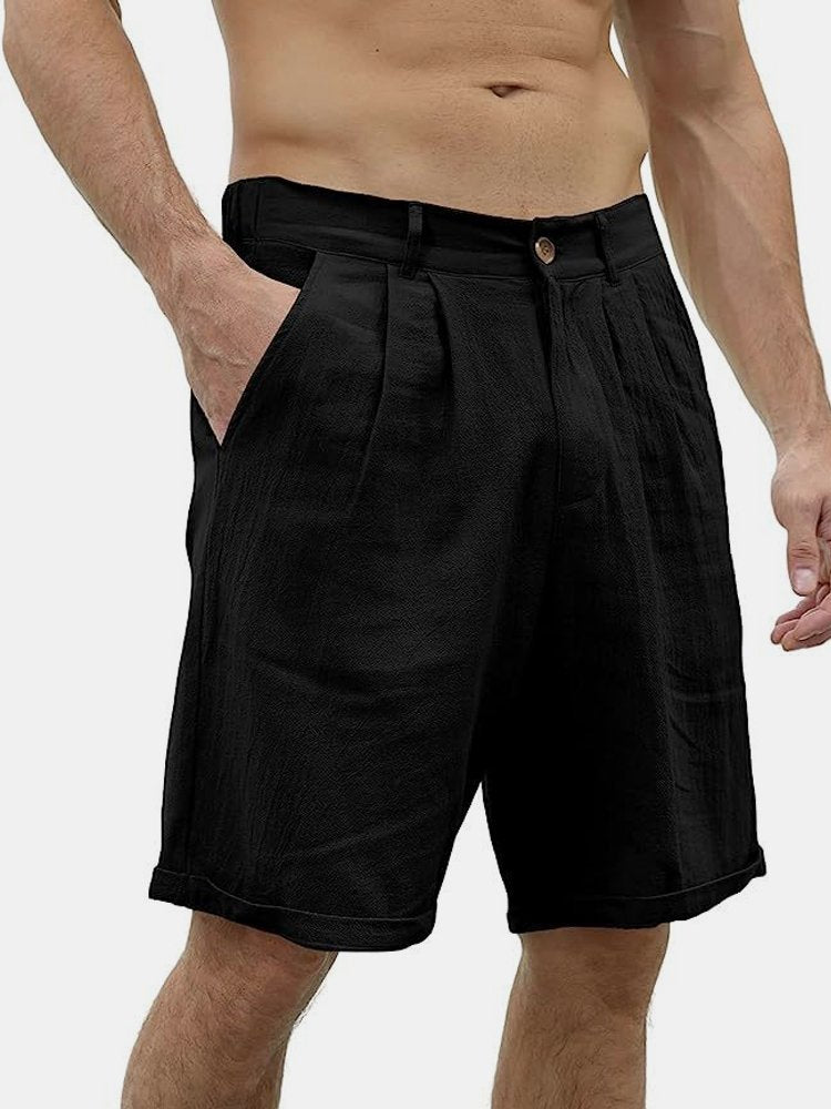 Pantalones cortos de lino Alohadaddy Pantalones cortos de playa básicos casuales para hombre Pantalones cortos de verano con botones