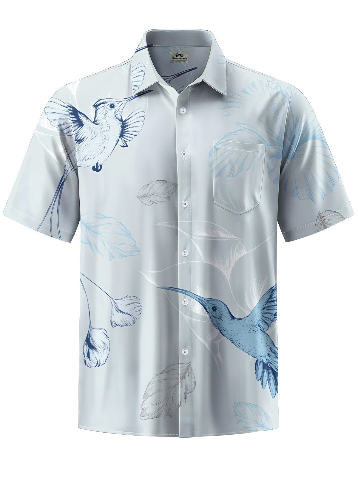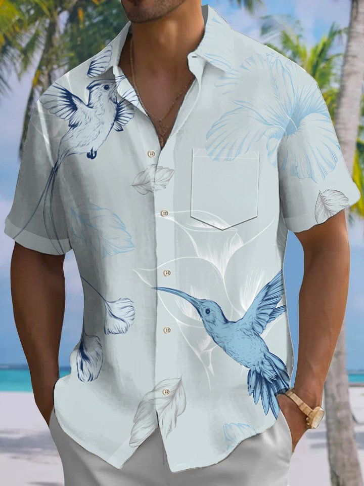 Alohadaddy® Casual Hummingbird Art Print Chest Pocket Mens Short Sleeve Shirt Big & Tall