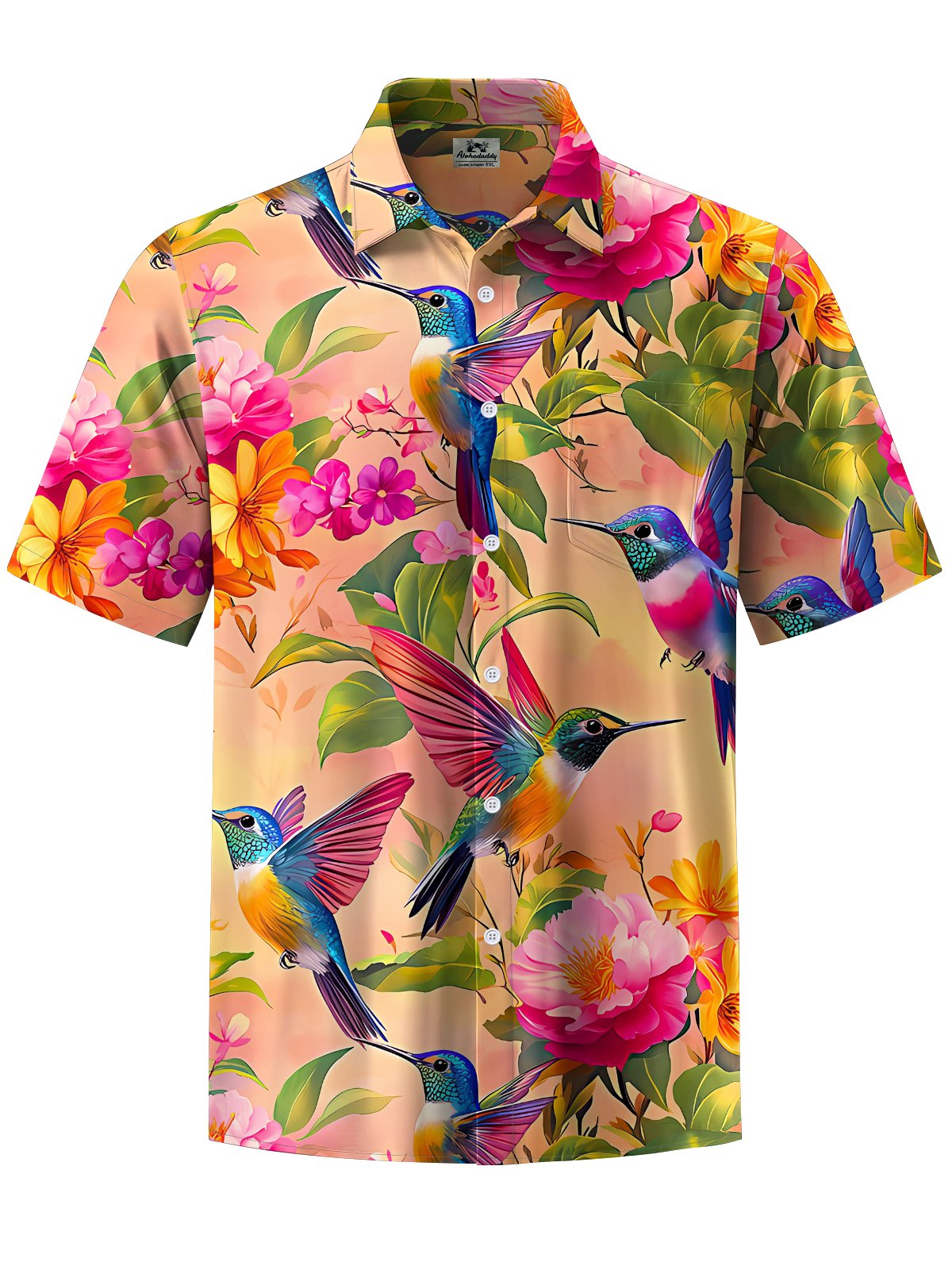 Alohadaddy® Hawaiian Bird Art Print Chest Pocket Men's Short Sleeve Shirt Big & Tall