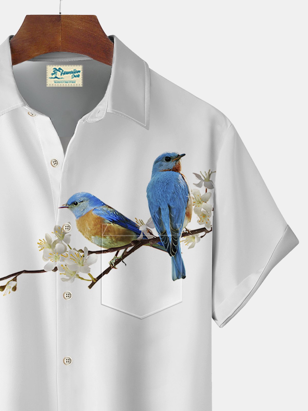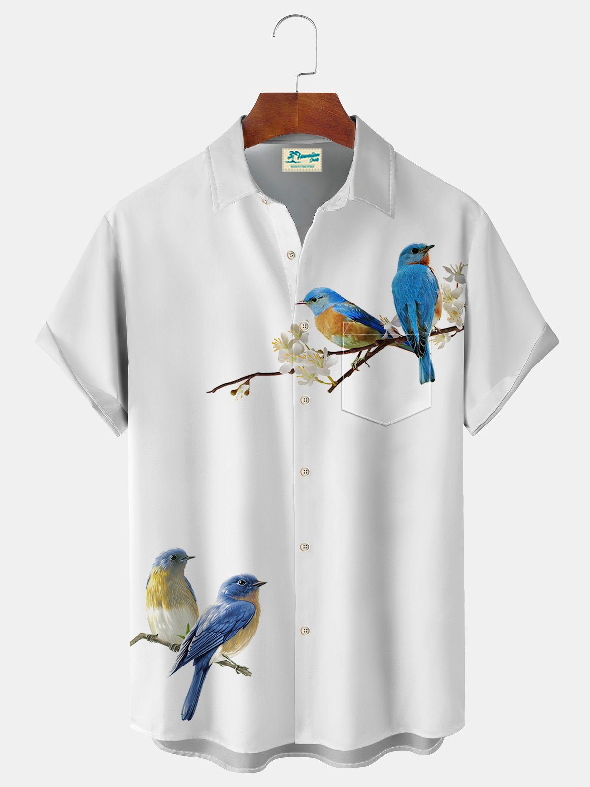 Camisa hawaiana de manga corta de gran tamaño con bolsillos y estampado de pájaros para hombre de Alohadaddy