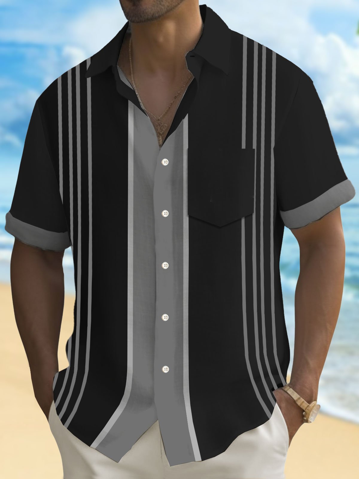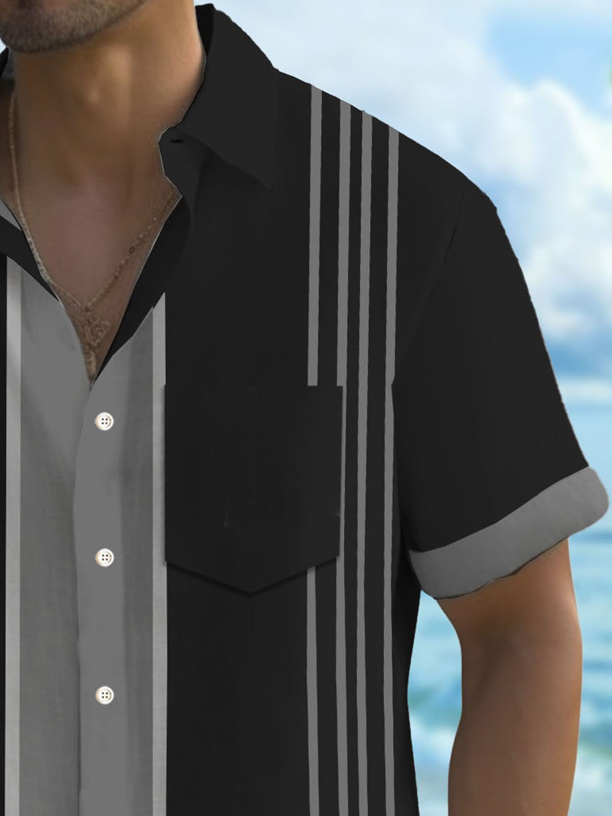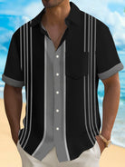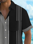 Camisa de manga corta con bolsillo abotonado y estampado de rayas estilo bolos retro para hombre de Alohadaddy