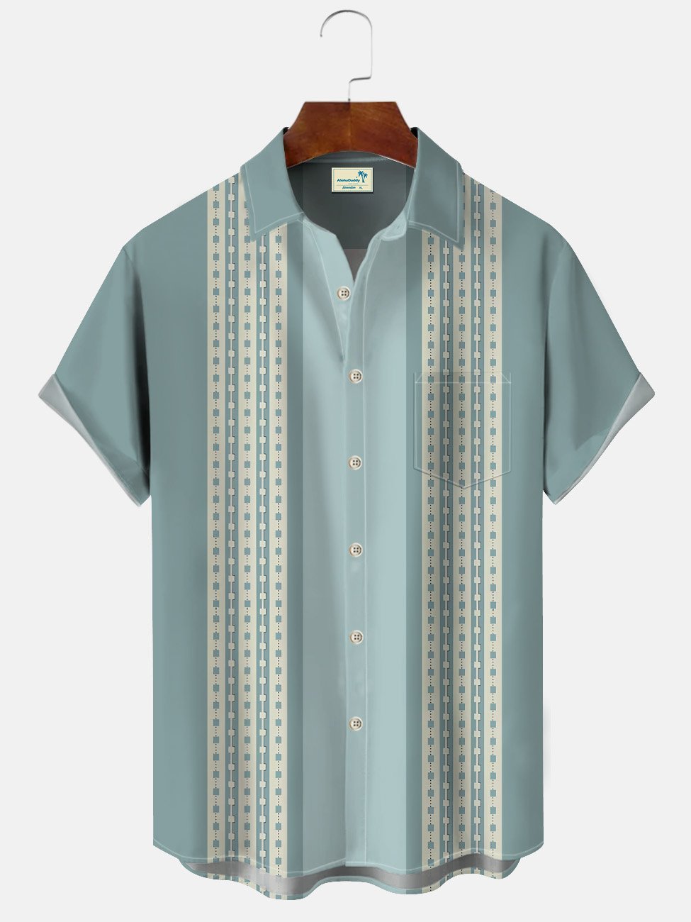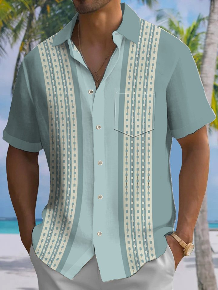 Camisa de manga corta con bolsillo abotonado para hombre, estilo informal, de verano, con estampado geométrico nacional, para vacaciones, de los años 50, para uso diario y bolos, de Alohadaddy