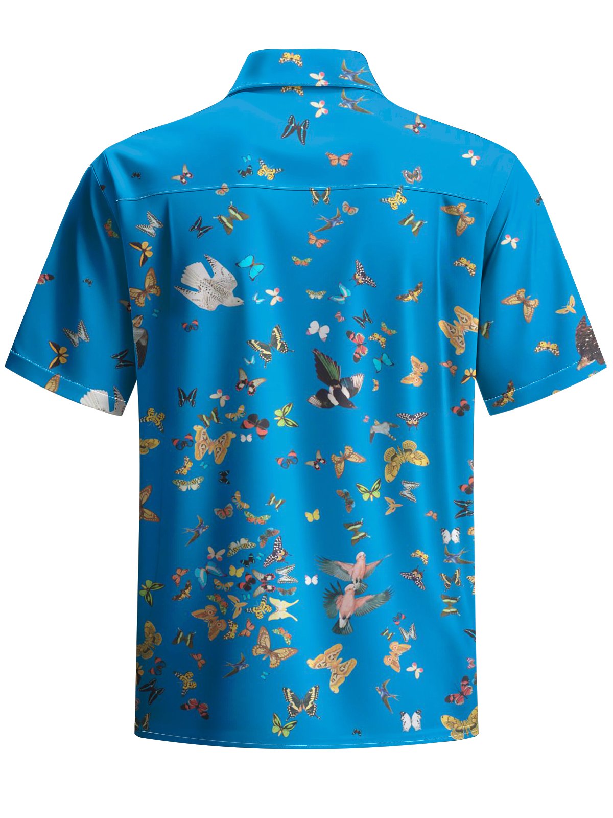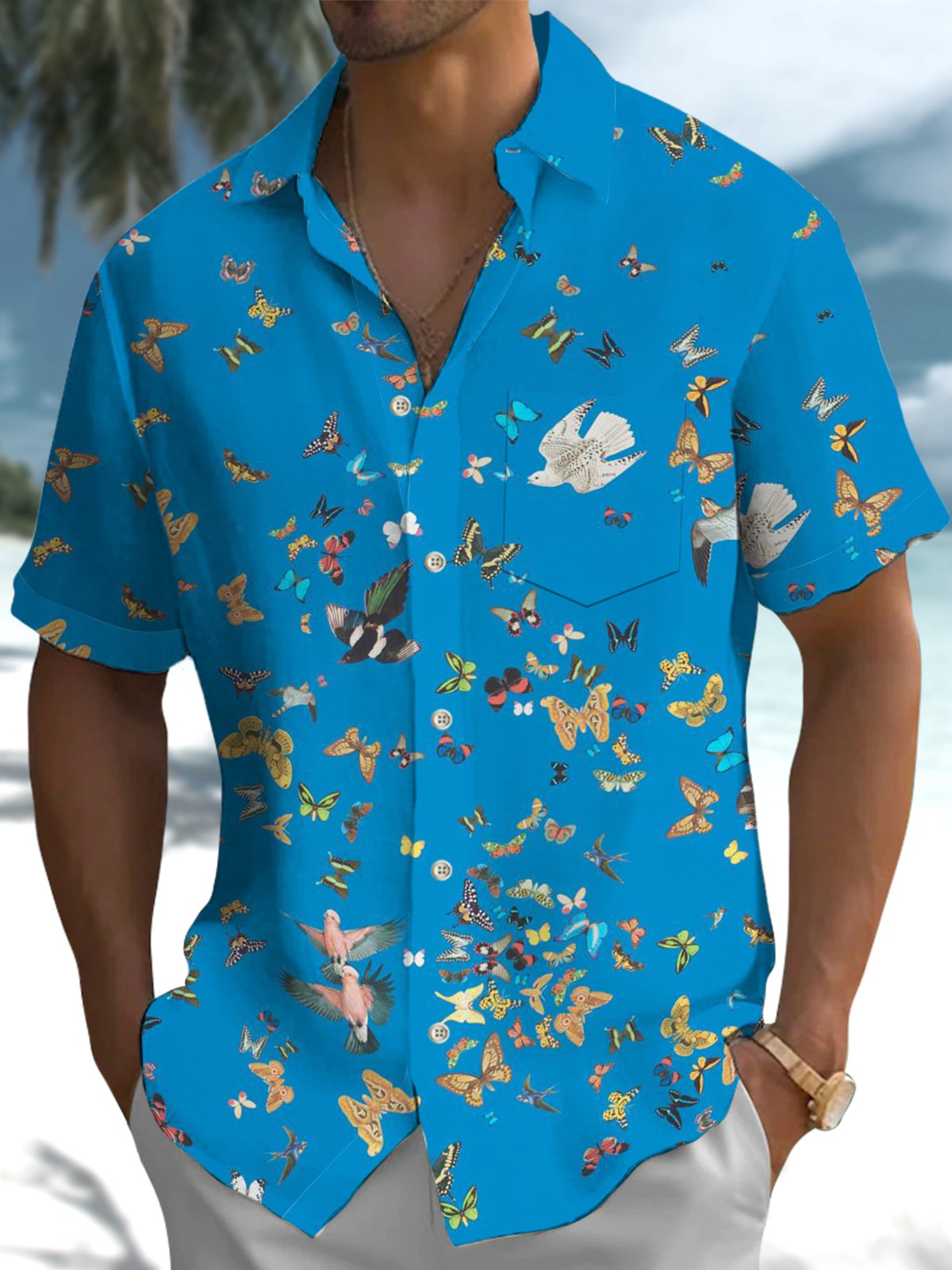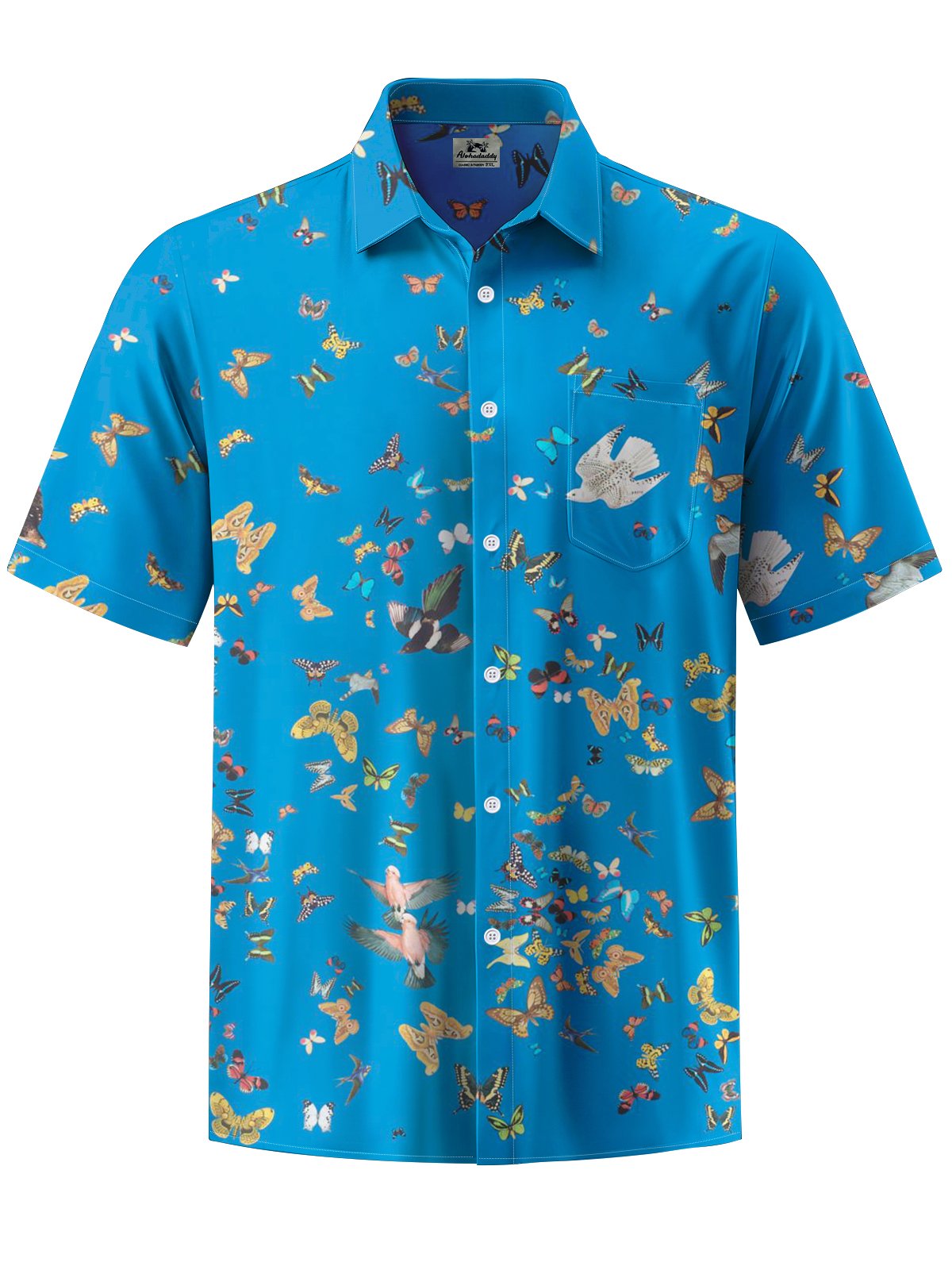 Alohadaddy® Casual Butterfly & Bird Print Button Pocket Men's Short Sleeve Shirt Big & Tall