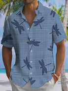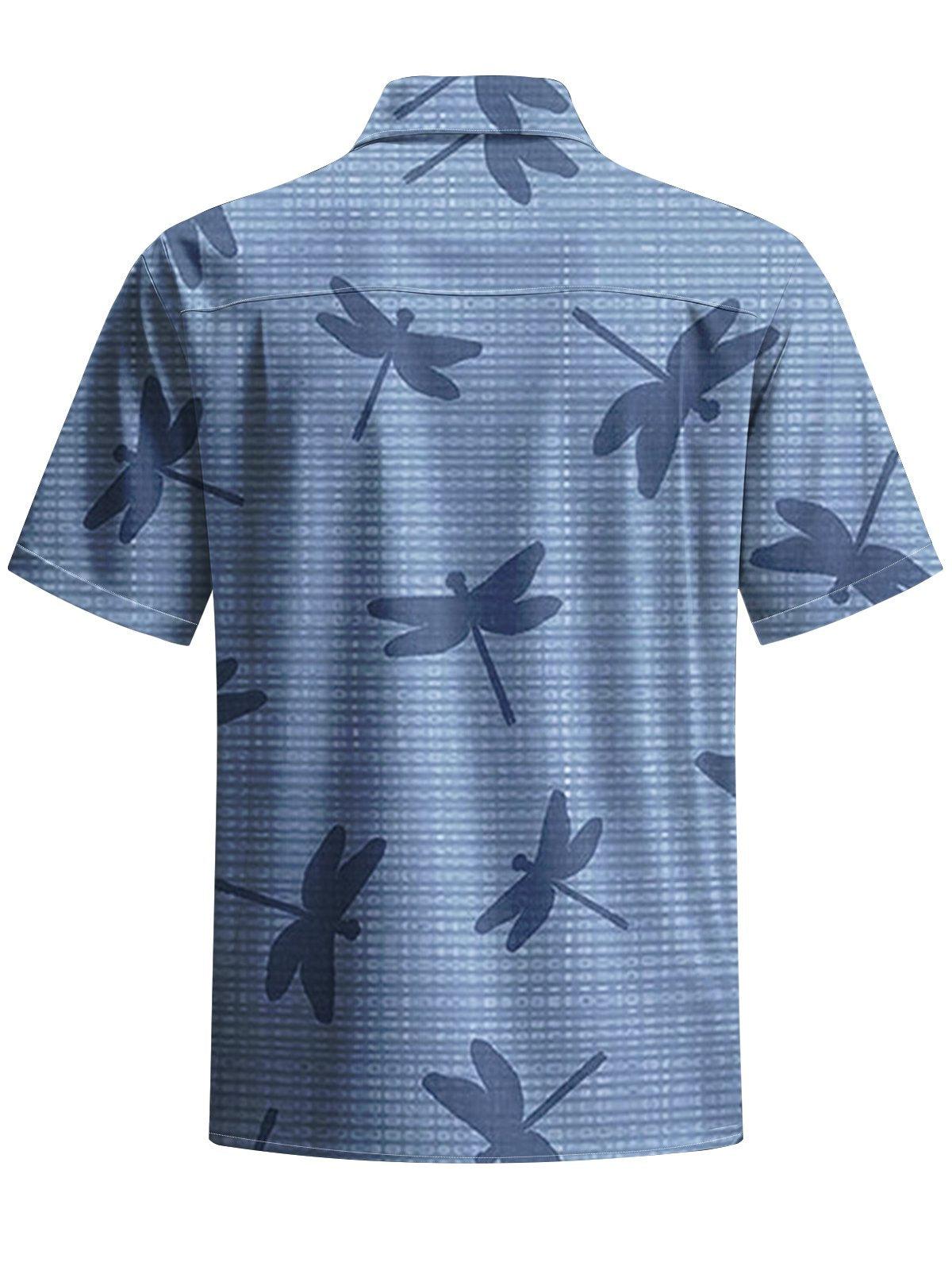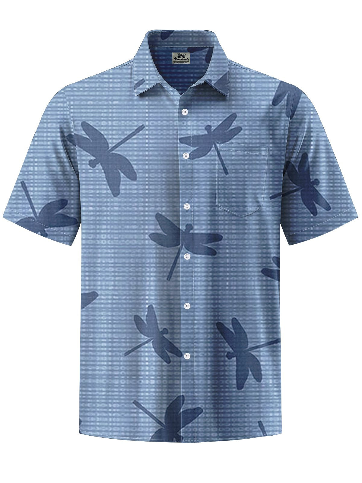 Alohadaddy® Men's Casual Dragonfly Art Print Chest Pocket Moisture-Wicking Short Sleeve Shirt Big & Tall