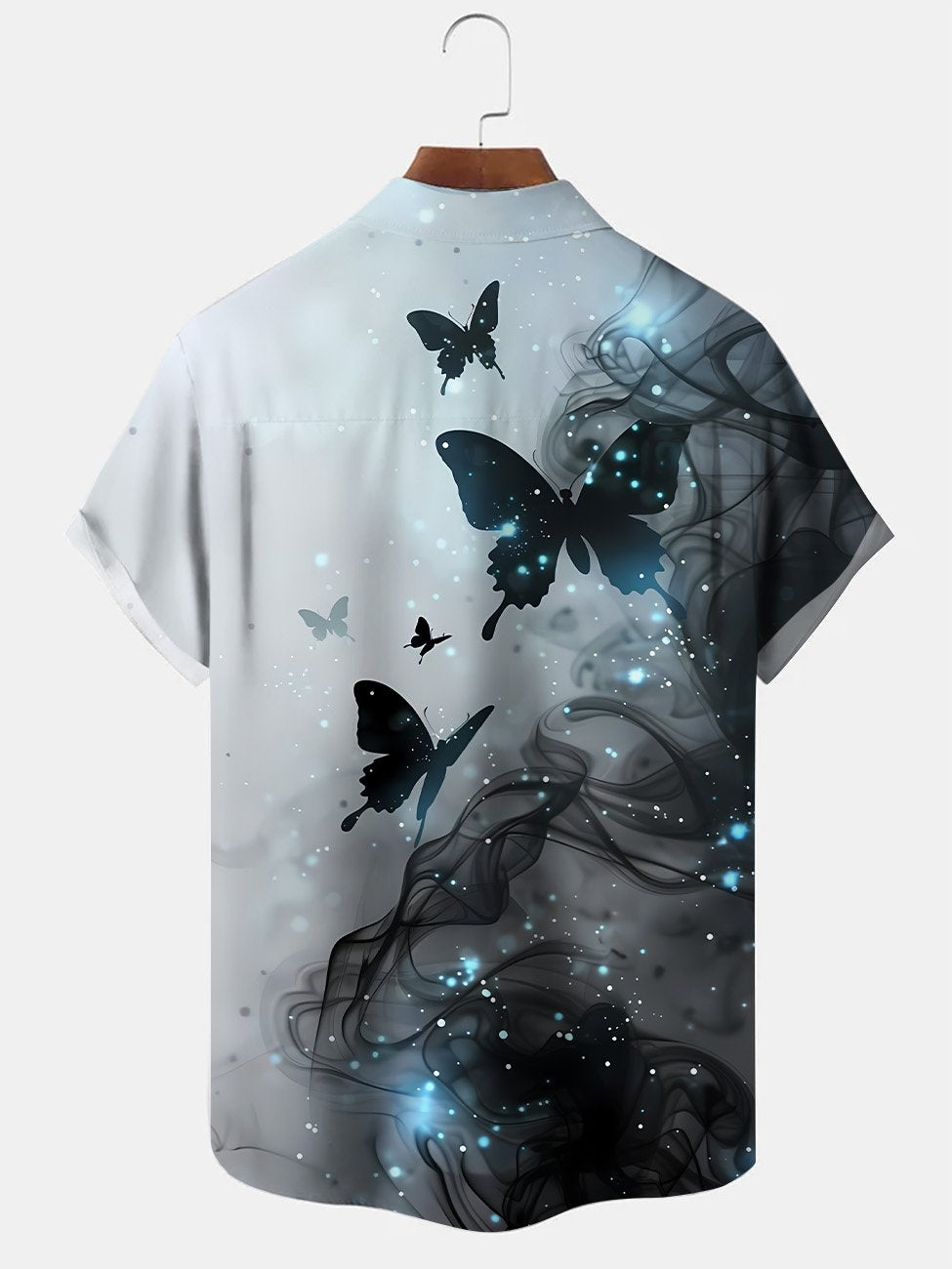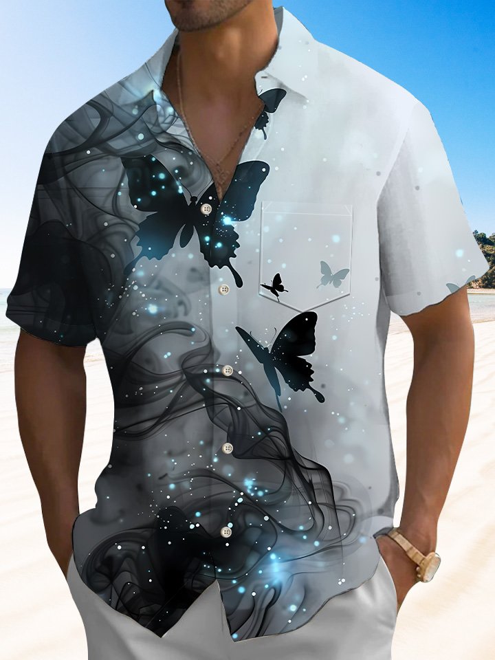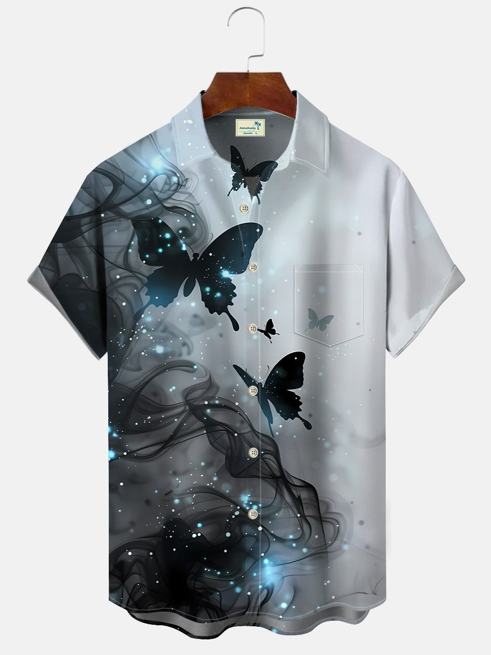 Camisa casual de manga corta con botones y bolsillo para hombre con diseño de mariposa y animal degradado Alohadaddy