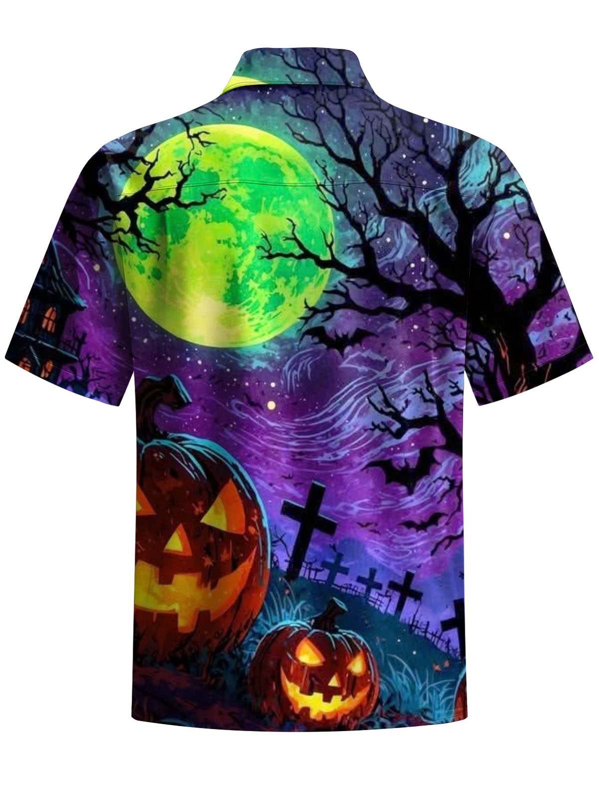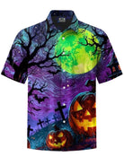 Alohadaddy® Halloween Castle Pumpkin Print Art Pocket Stretch Men's Short Sleeve Shirt Big & Tall
