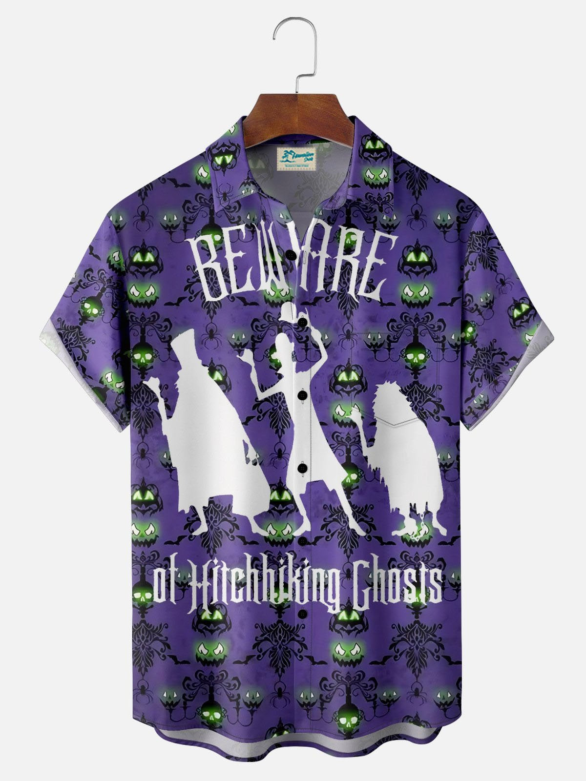 Alohadaddy® Halloween Movie Print Men's Button Pocket Short Sleeve Shirt Big & Tall