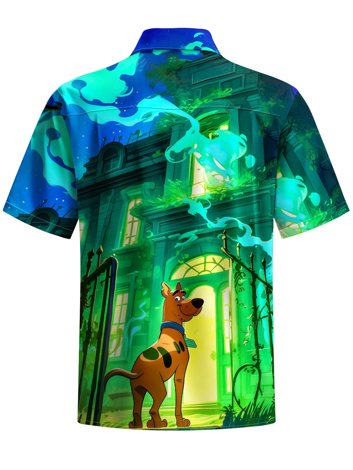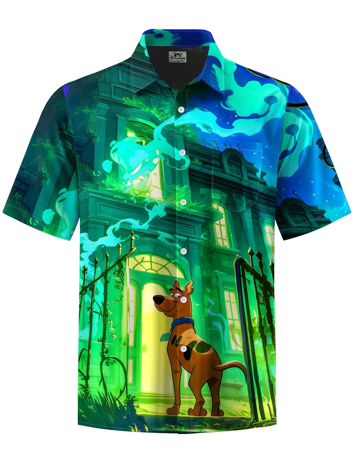 Alohadaddy® Halloween Scooby-Doo Printed Elastic Pocket Button Men's Short Sleeve Shirt Big & Tall