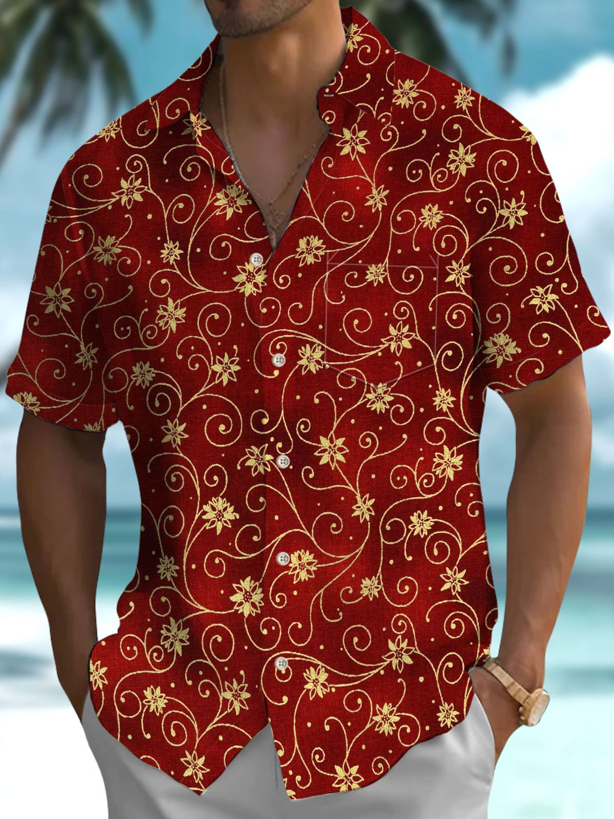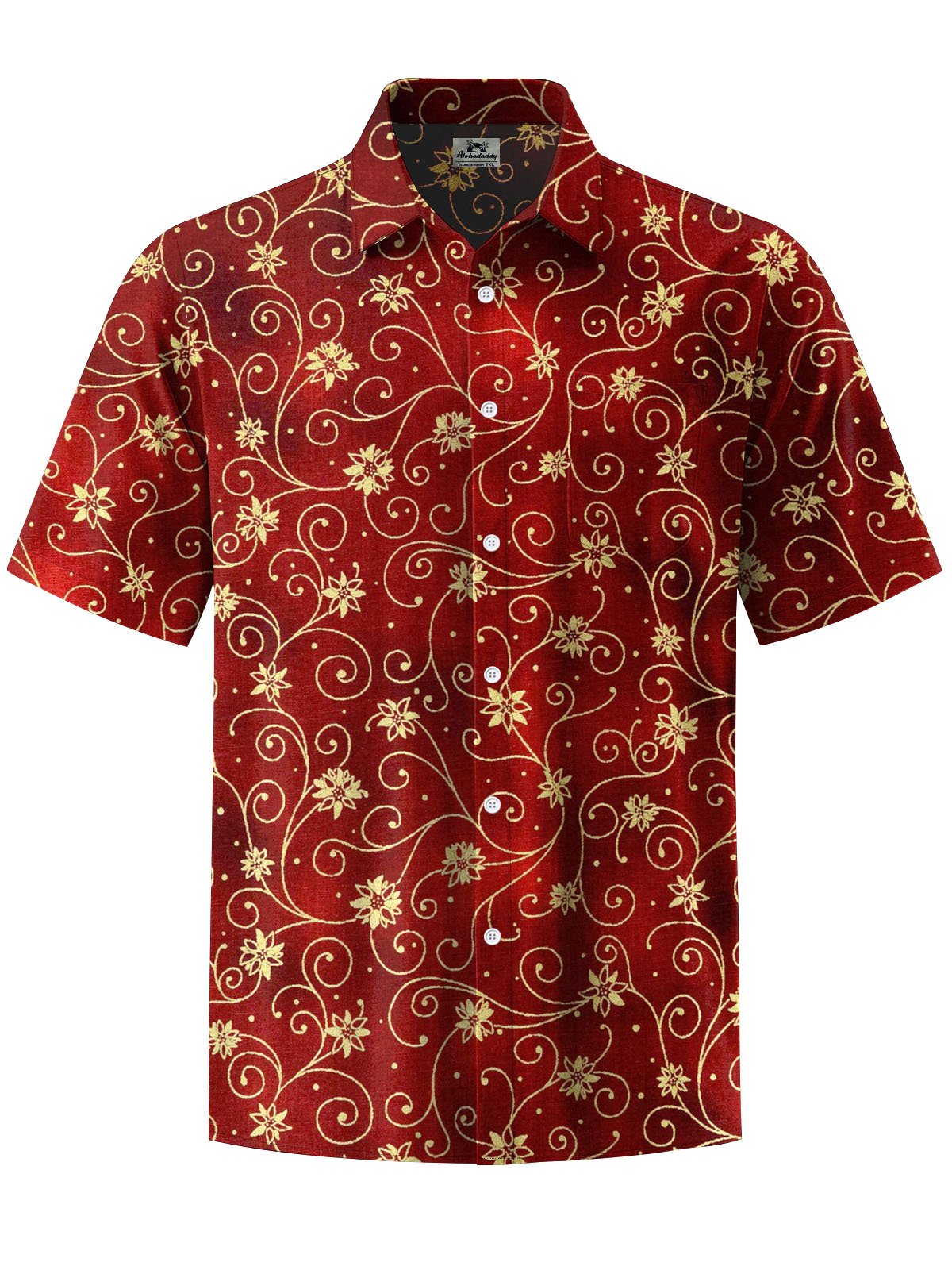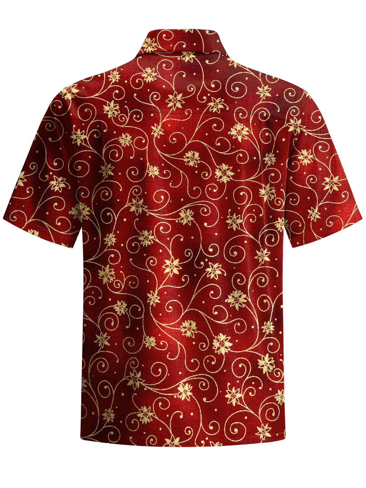 Alohadaddy® Holiday Christmas Floral Art Print Pocket Stretch Men's Short Sleeve Shirt Big & Tall