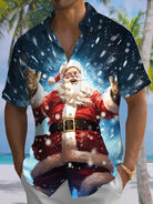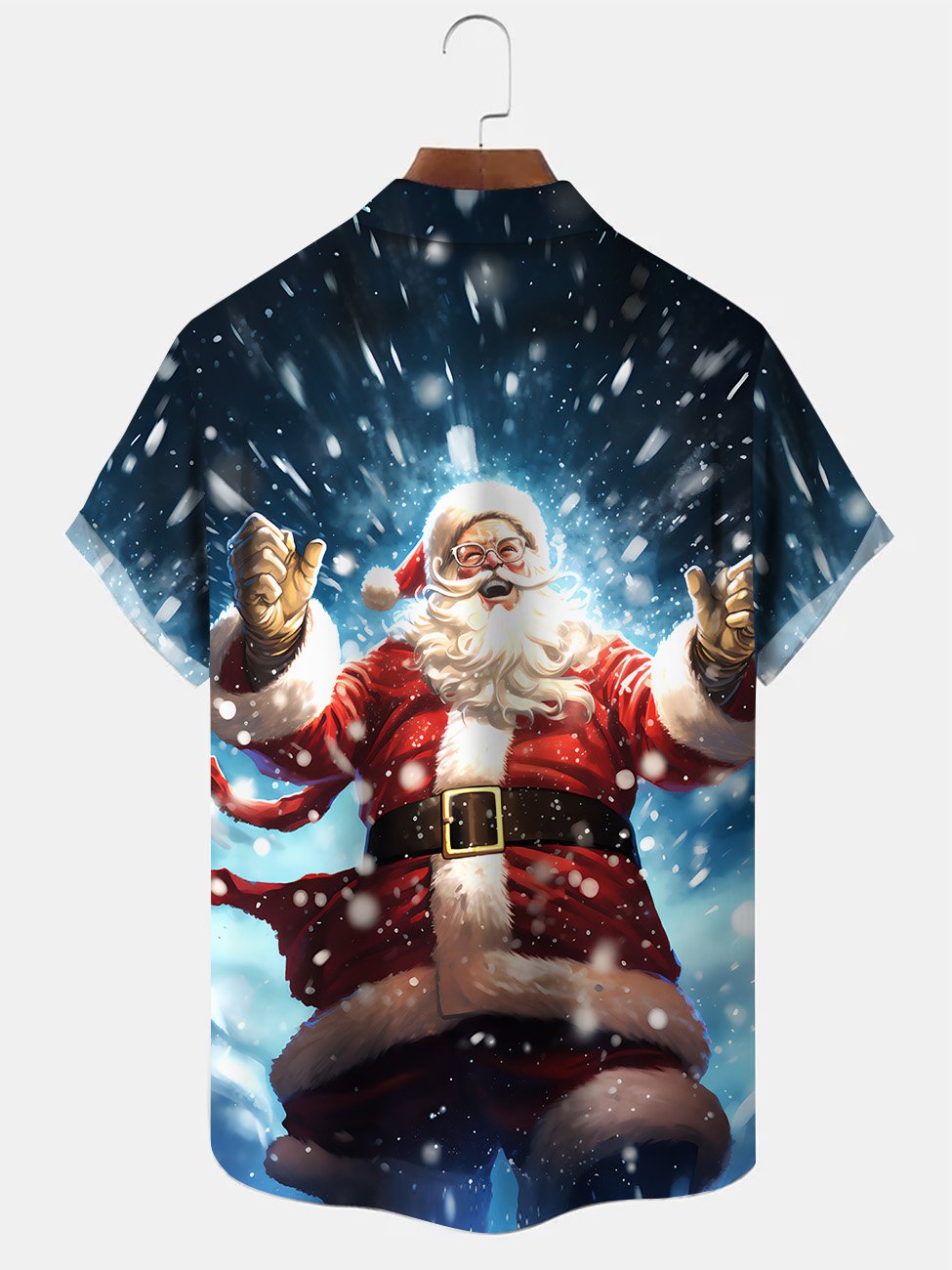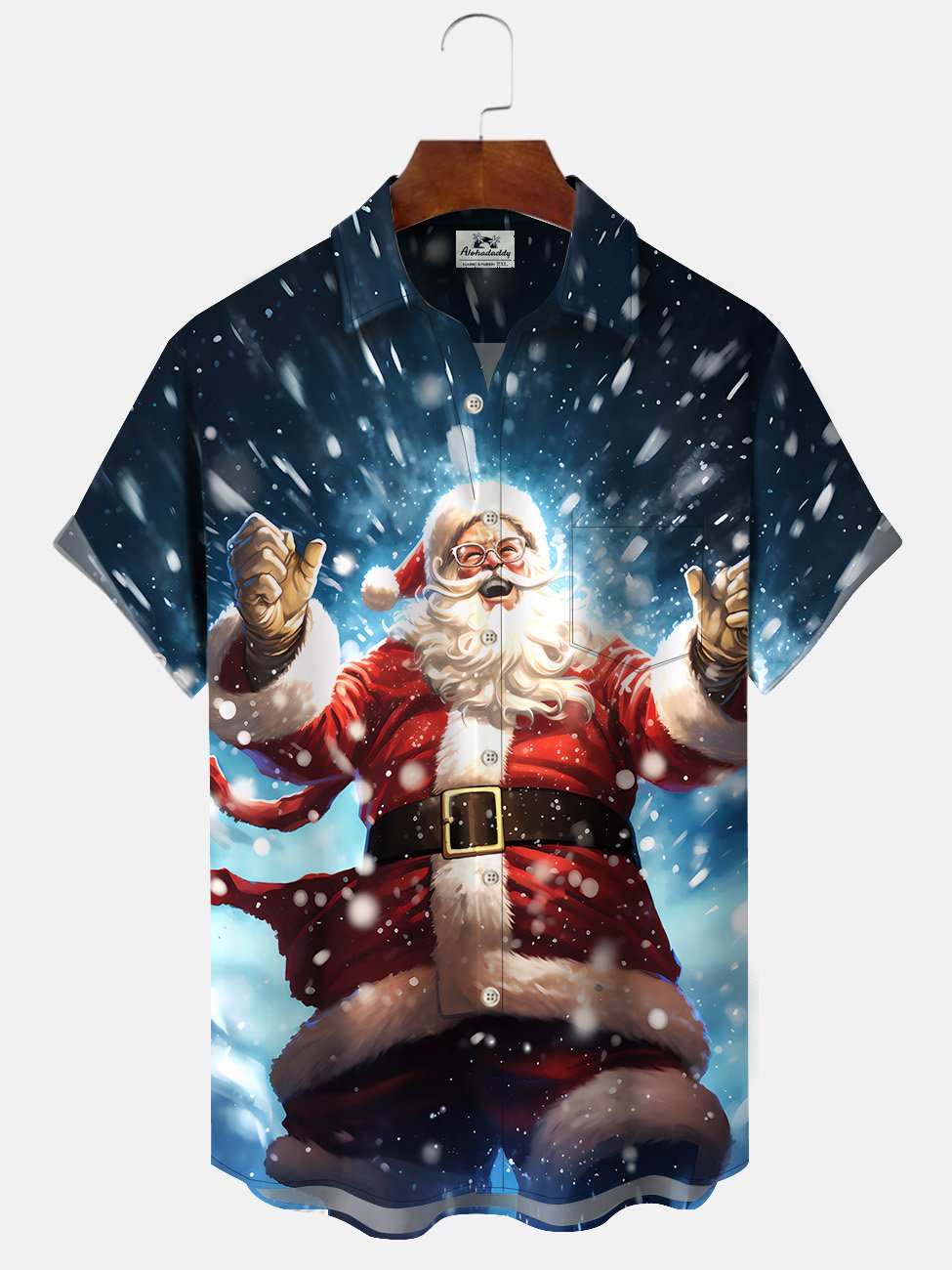 Camisa informal de manga corta con bolsillos y botones navideños de Alohadaddy