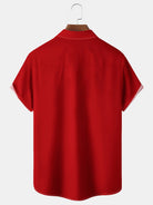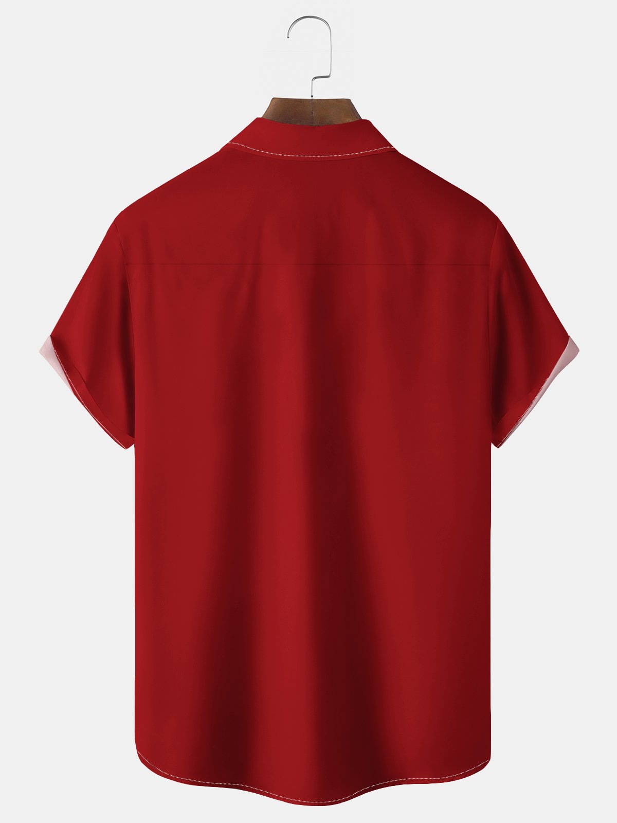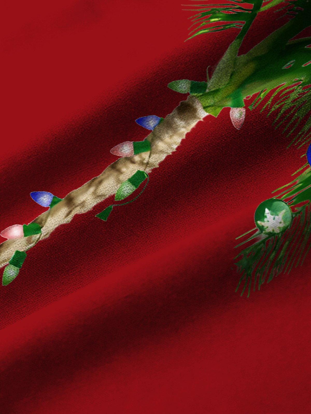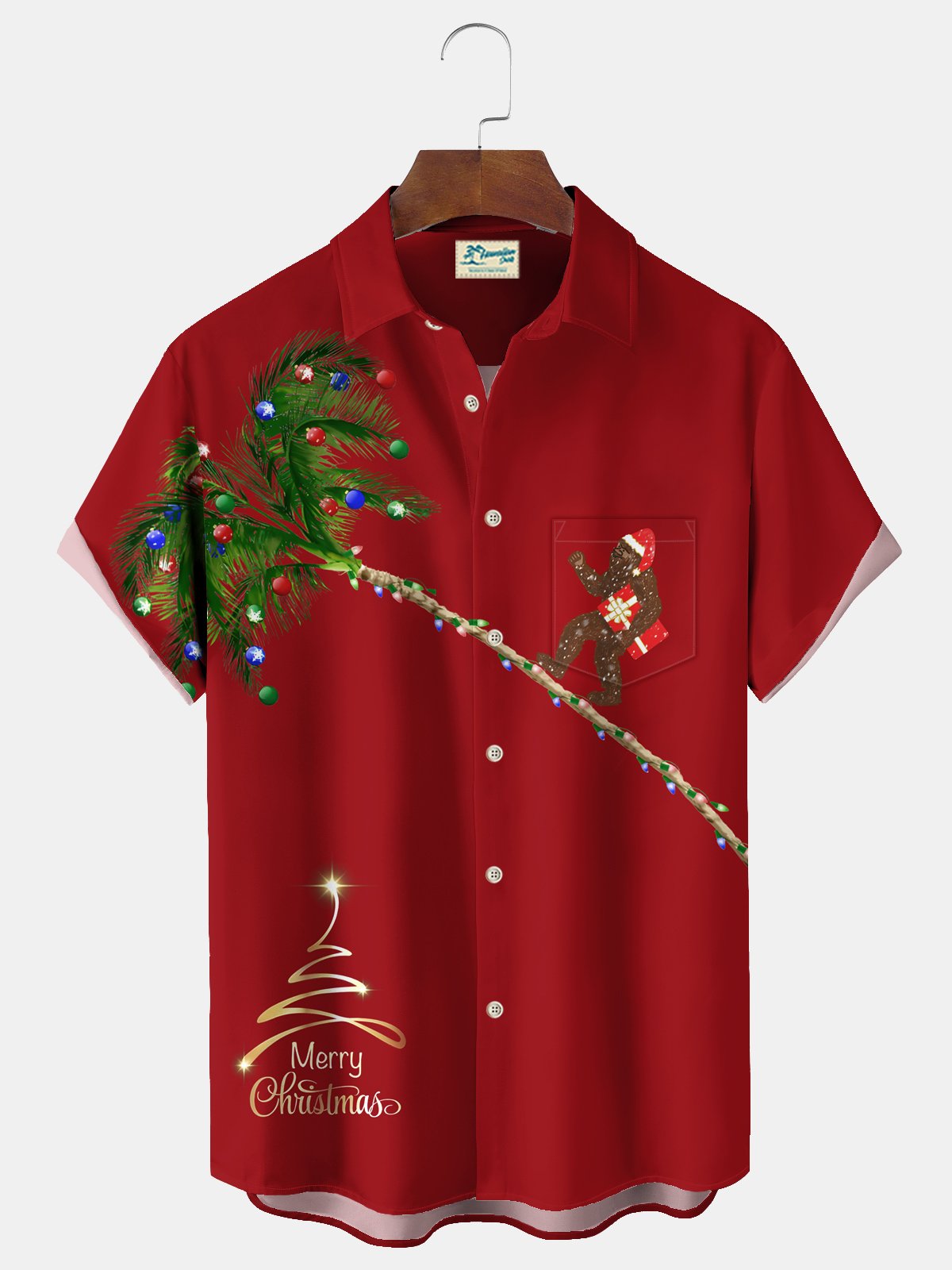Camisa hawaiana elástica con bolsillo en el pecho y estampado de árbol de Navidad y linterna de pies grandes para hombre de Alohadaddy Christmas