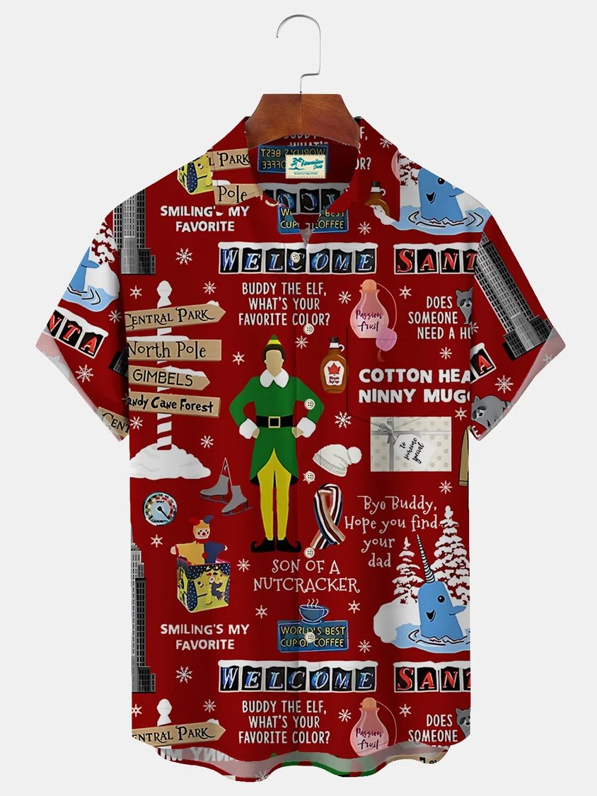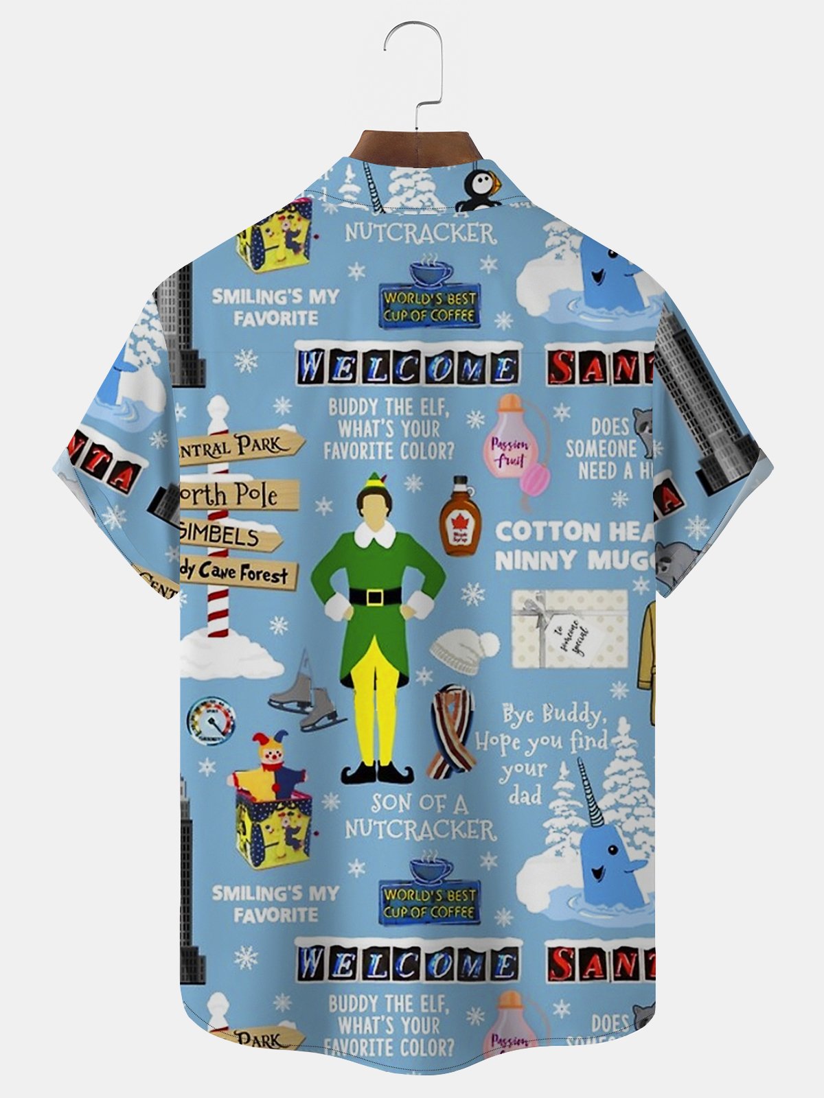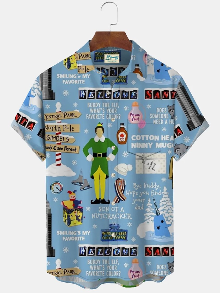 Camisa de manga corta con bolsillo y botones para hombre con estampado divertido de dibujos animados de Halloween de Alohadaddy