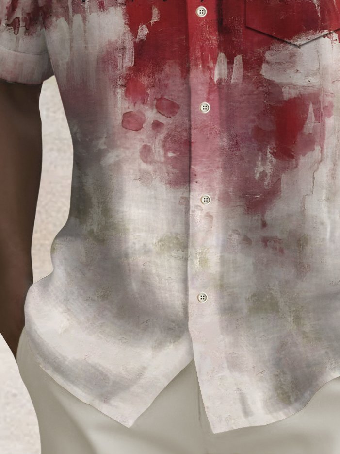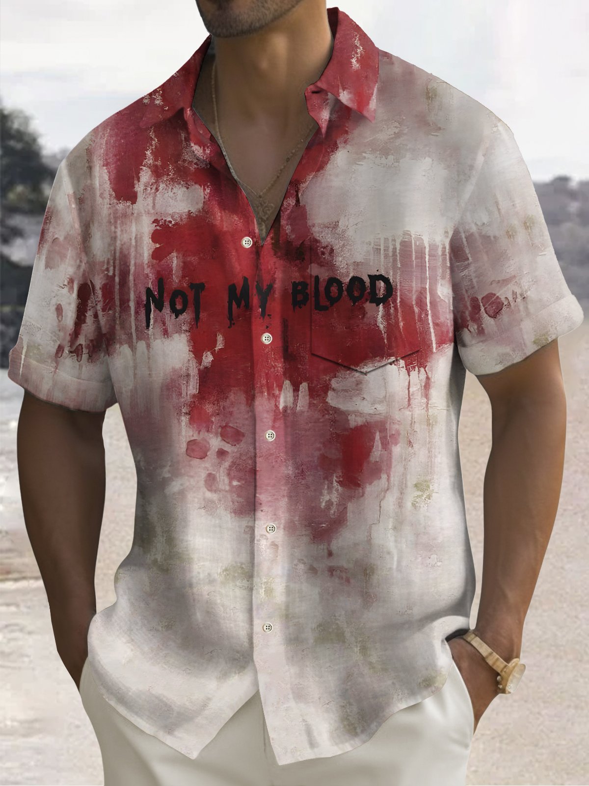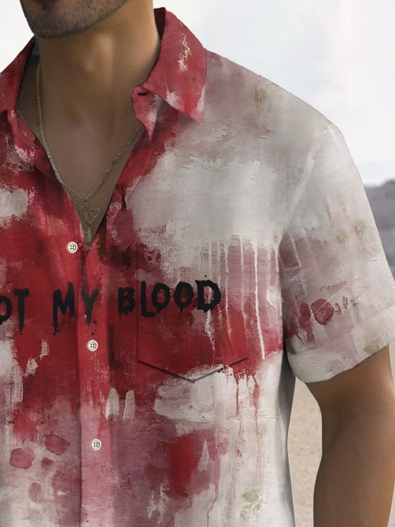 Camisa elástica con bolsillo en el pecho y estampado degradado de Halloween para hombre de Alohadaddy, talla grande