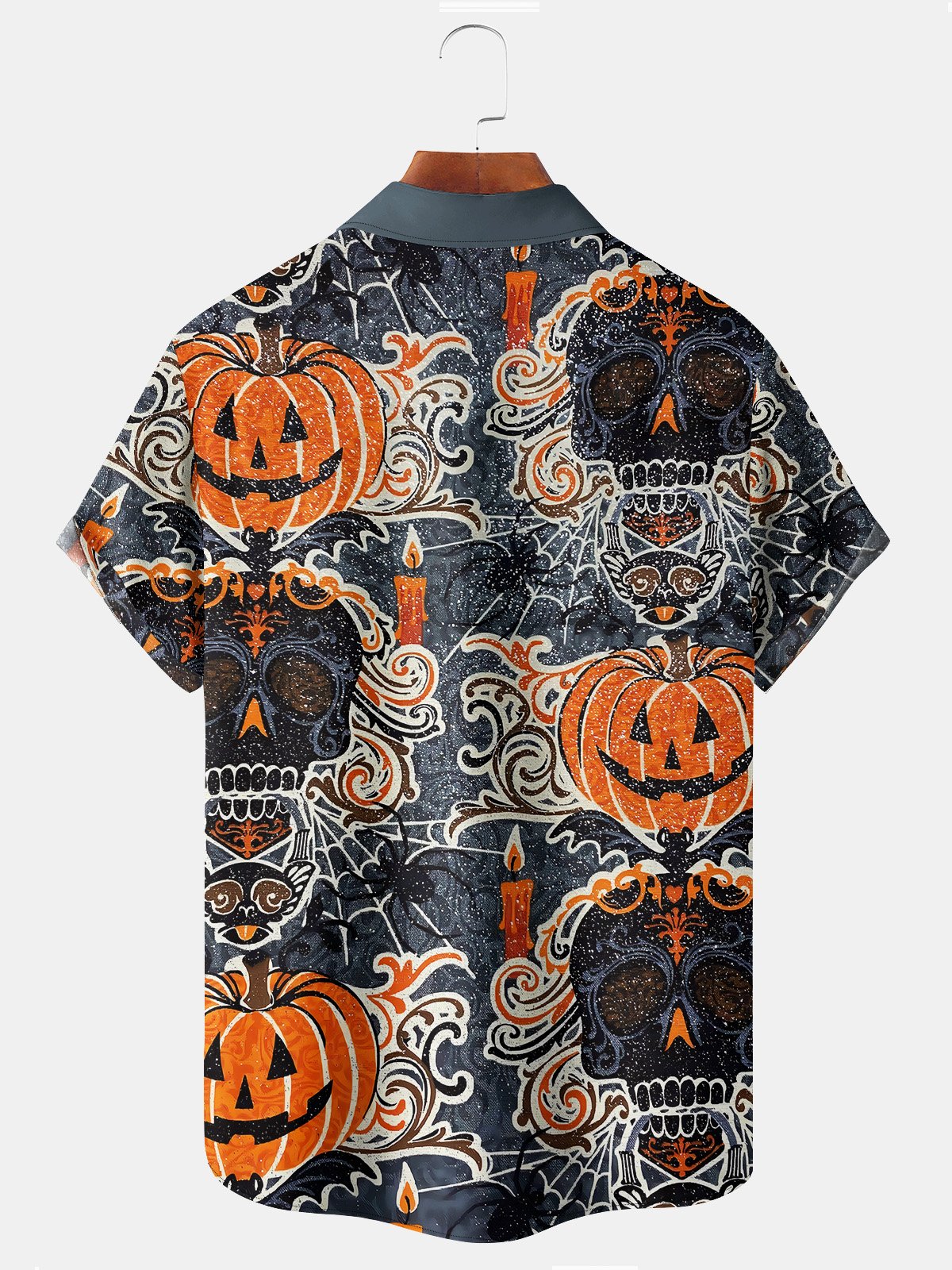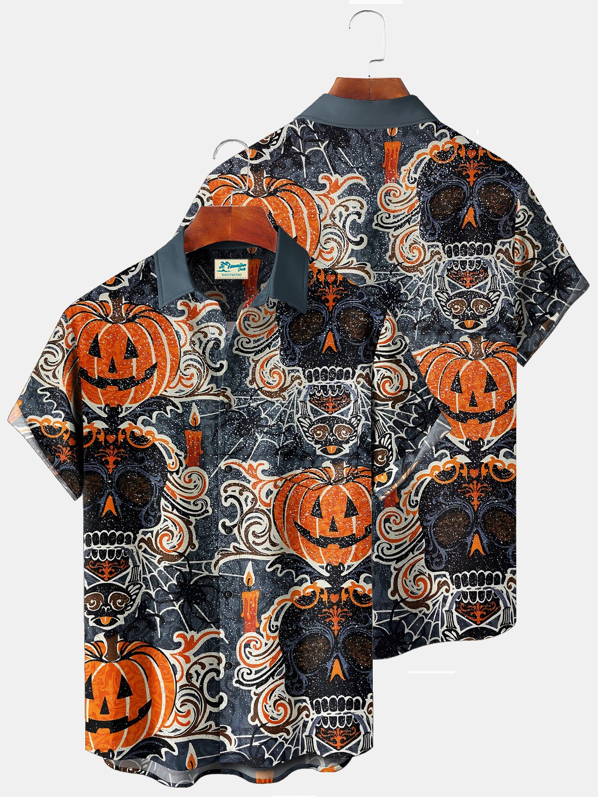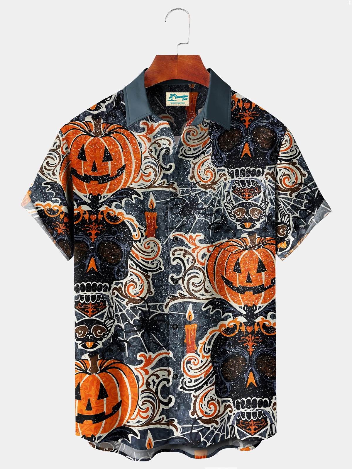 Camisa hawaiana negra para hombre con estampado de murciélago y calabaza de Alohadaddy para fiesta de Halloween, elástica, de talla grande, para campamento Aloha