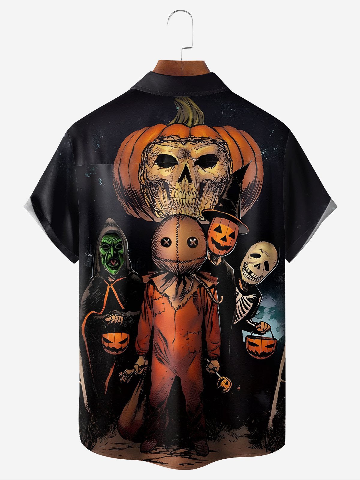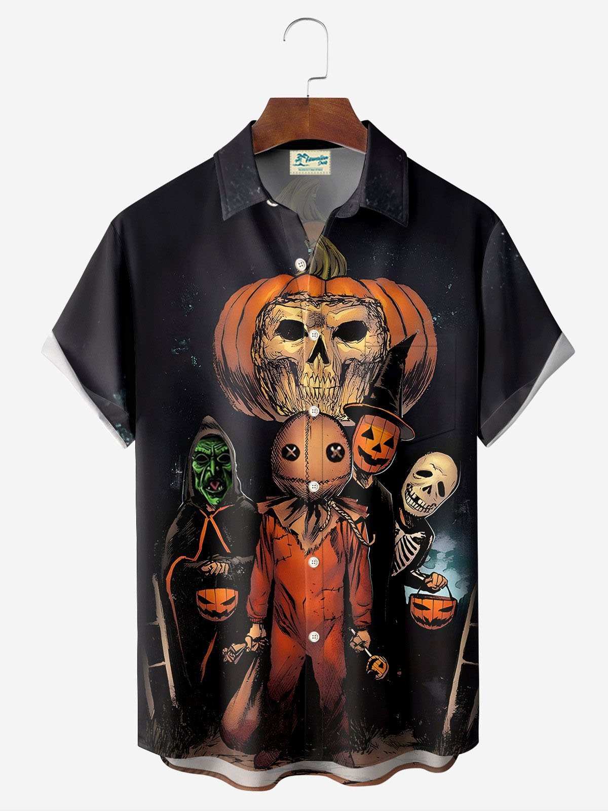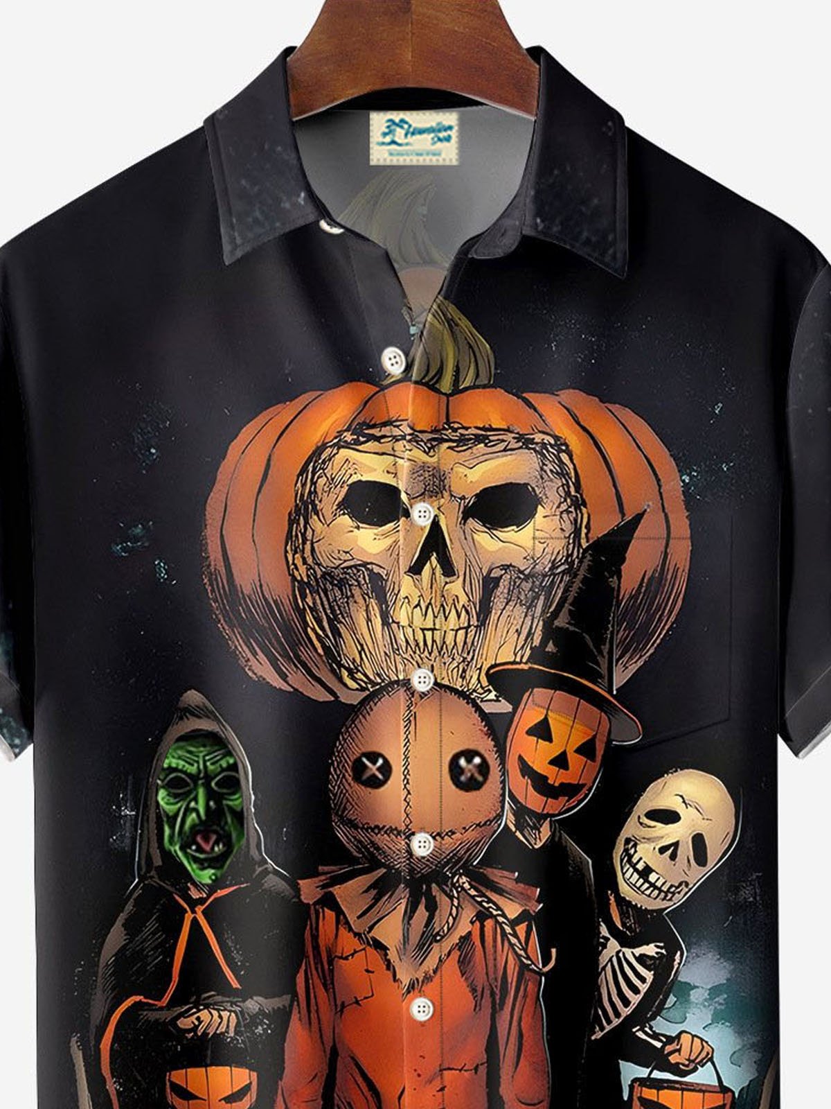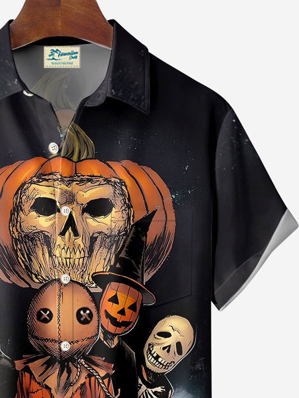 Camisa de manga corta con bolsillo y botones para hombre con estampado digital 3D de calavera de película de Halloween de Alohadaddy, talla grande y alta