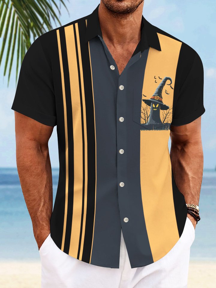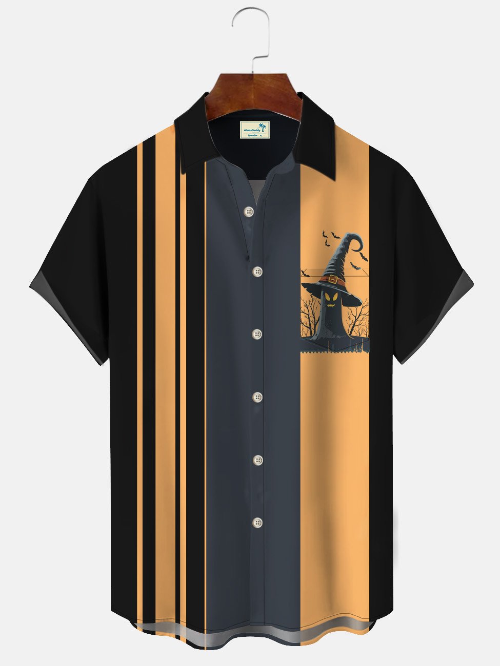 Camisa informal de manga corta para hombre, estilo años 50, con bolsillos y botones, estilo bolos y calabaza de Halloween de Alohadaddy