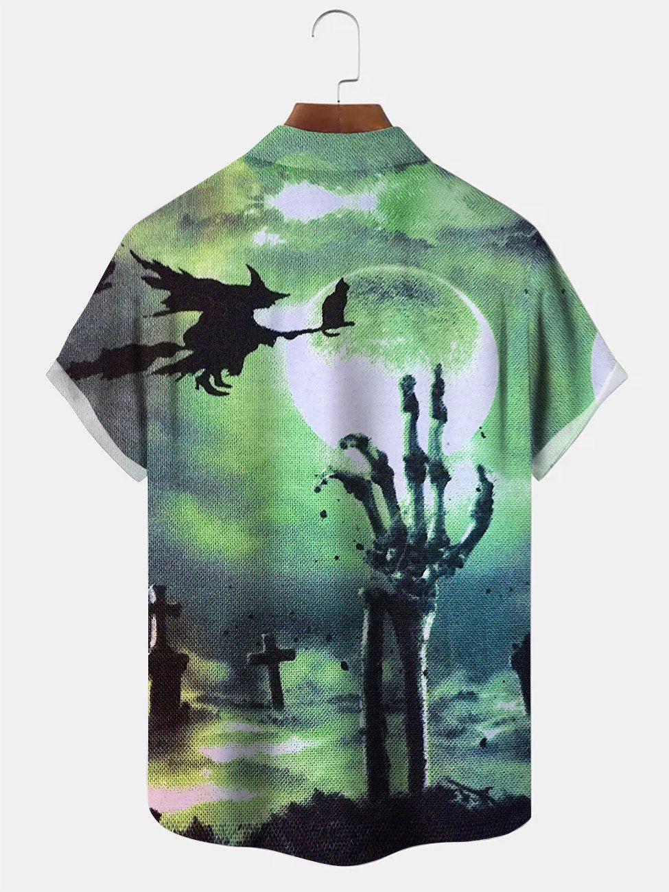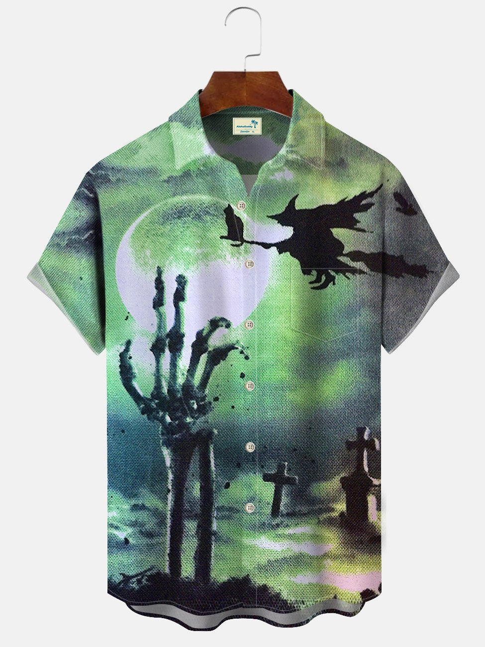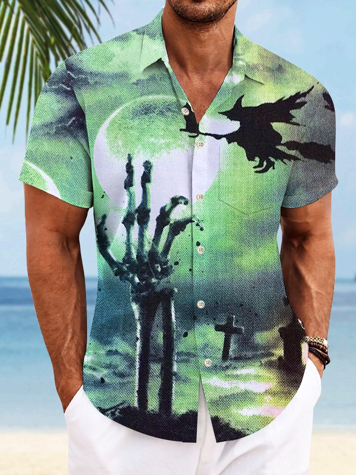 Camisa informal de manga corta con botones y bolsillo con calavera de Halloween de Alohadaddy