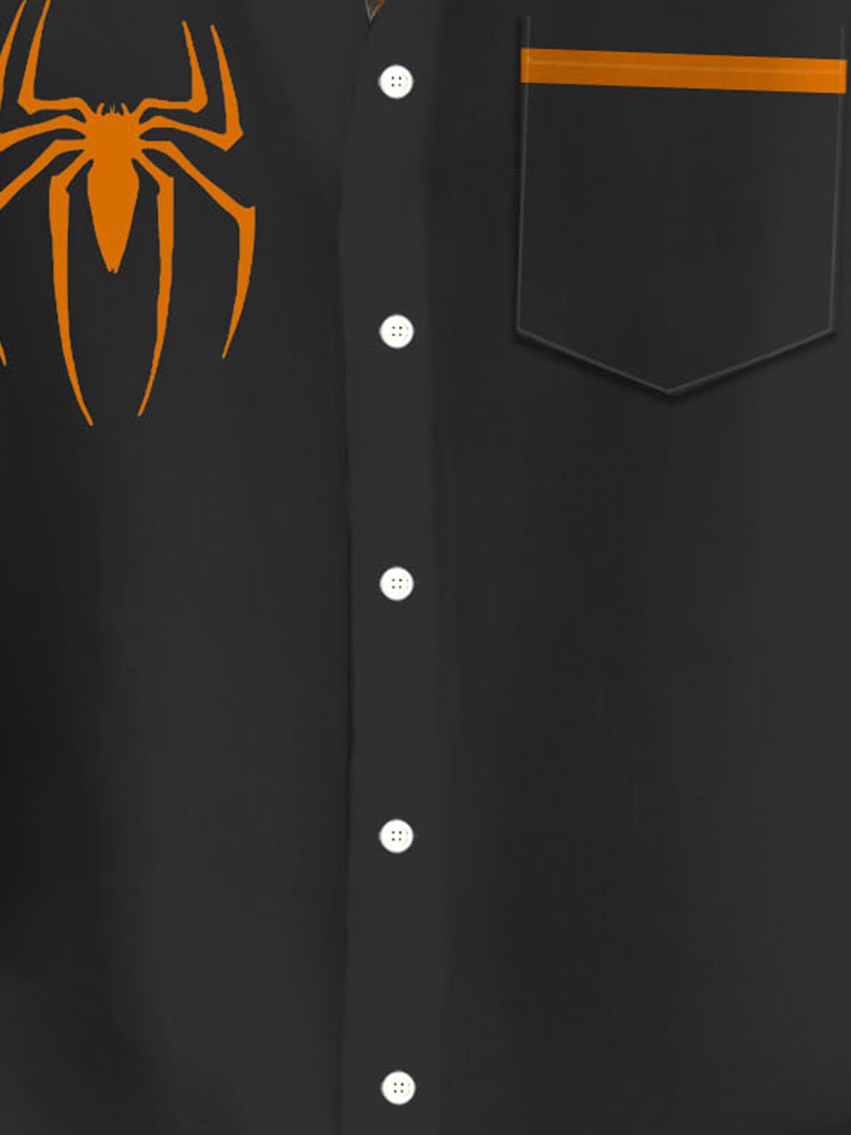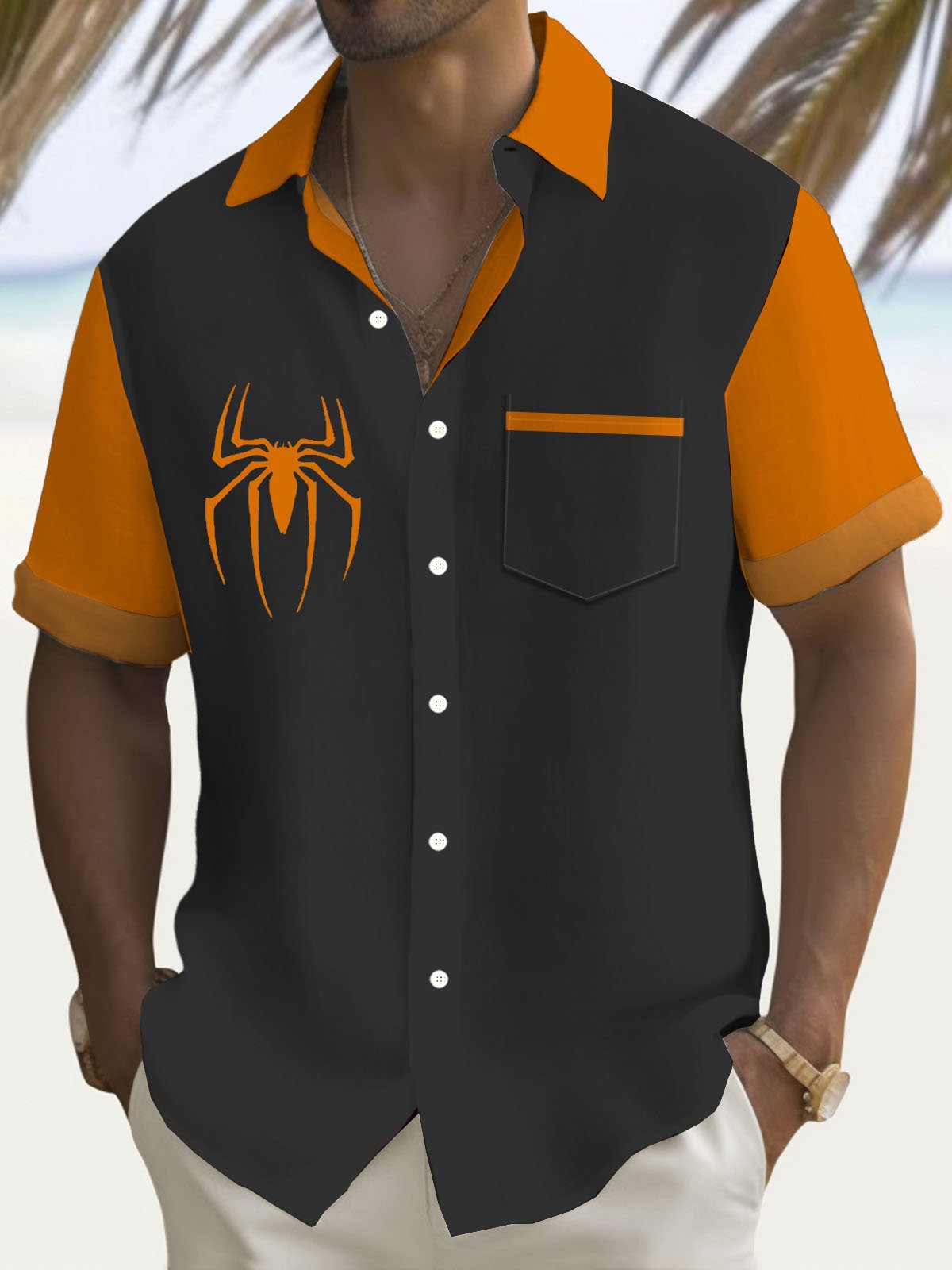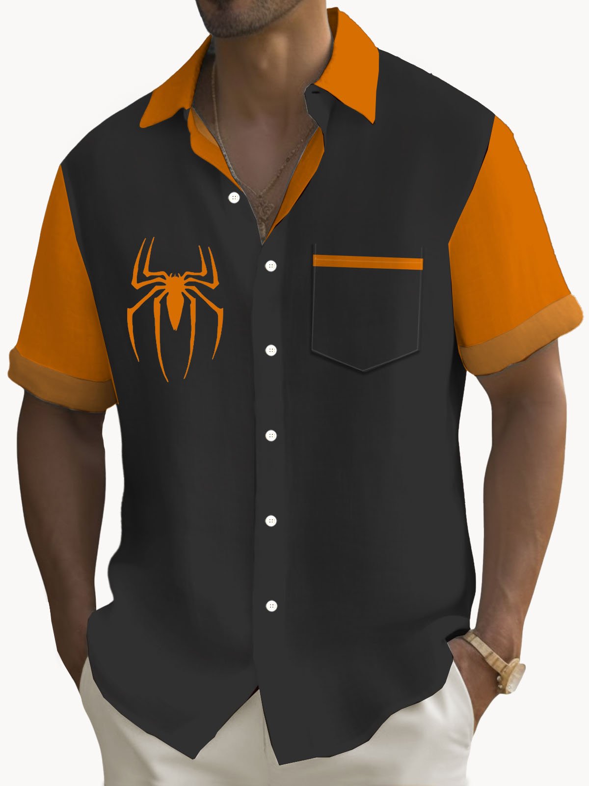 Camisa de manga corta con bolsillo abotonado y estampado digital 3D de araña de Halloween para hombre de Alohadaddy, talla grande y alta