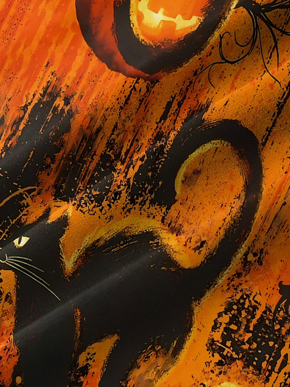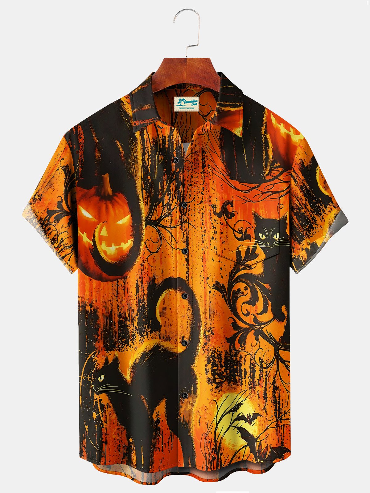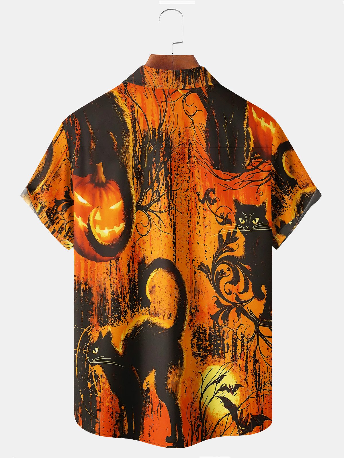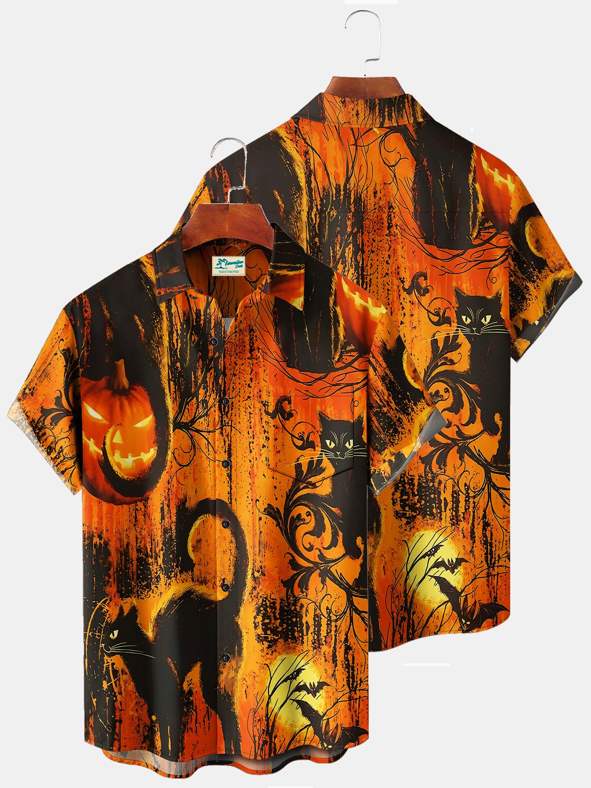 Camisas hawaianas de hombre con estampado de murciélagos y dibujos animados de gato negro fantasma, color naranja y naranja, de Alohadaddy Holiday, elásticas, de talla grande, para campamento Aloha