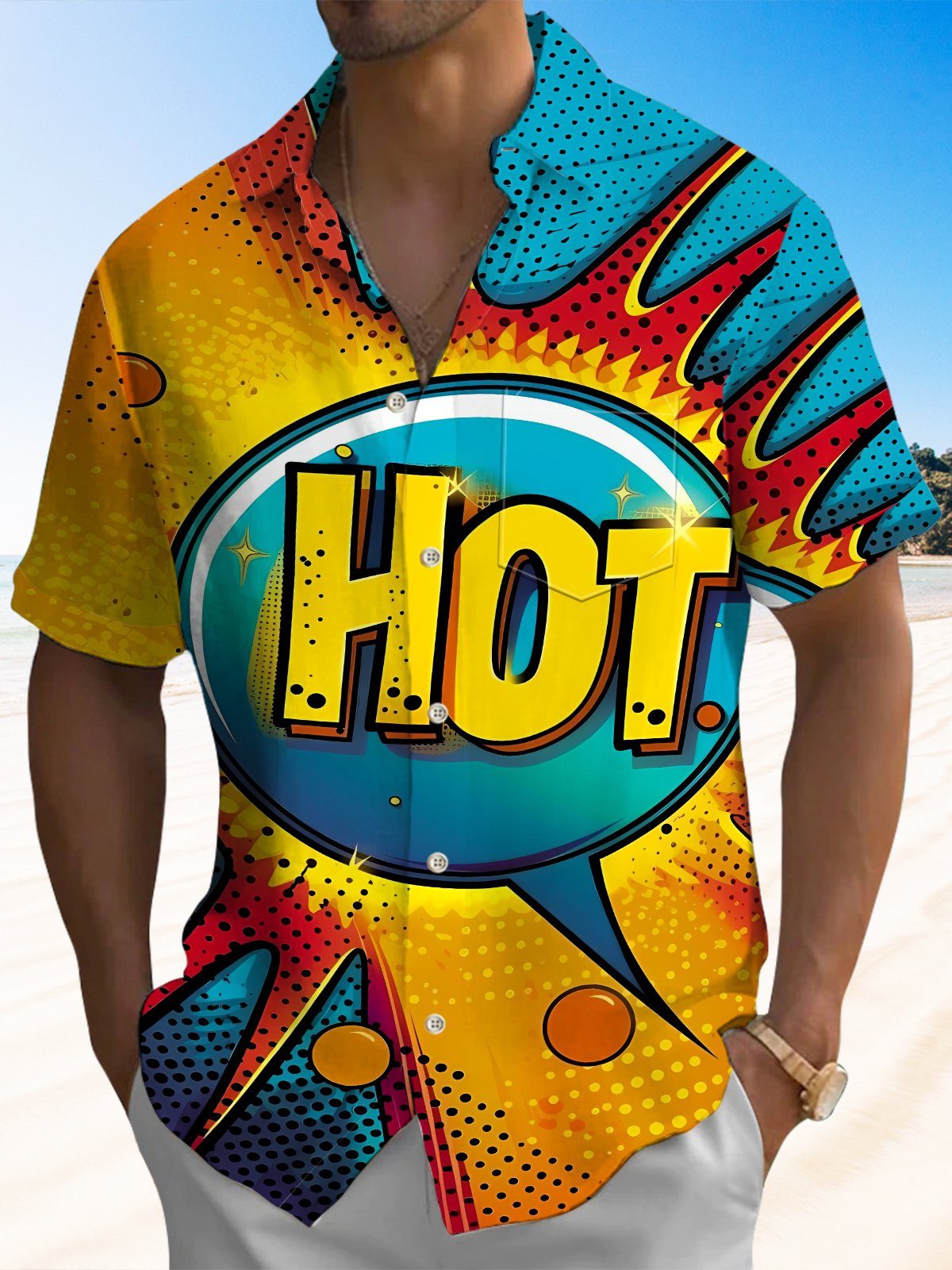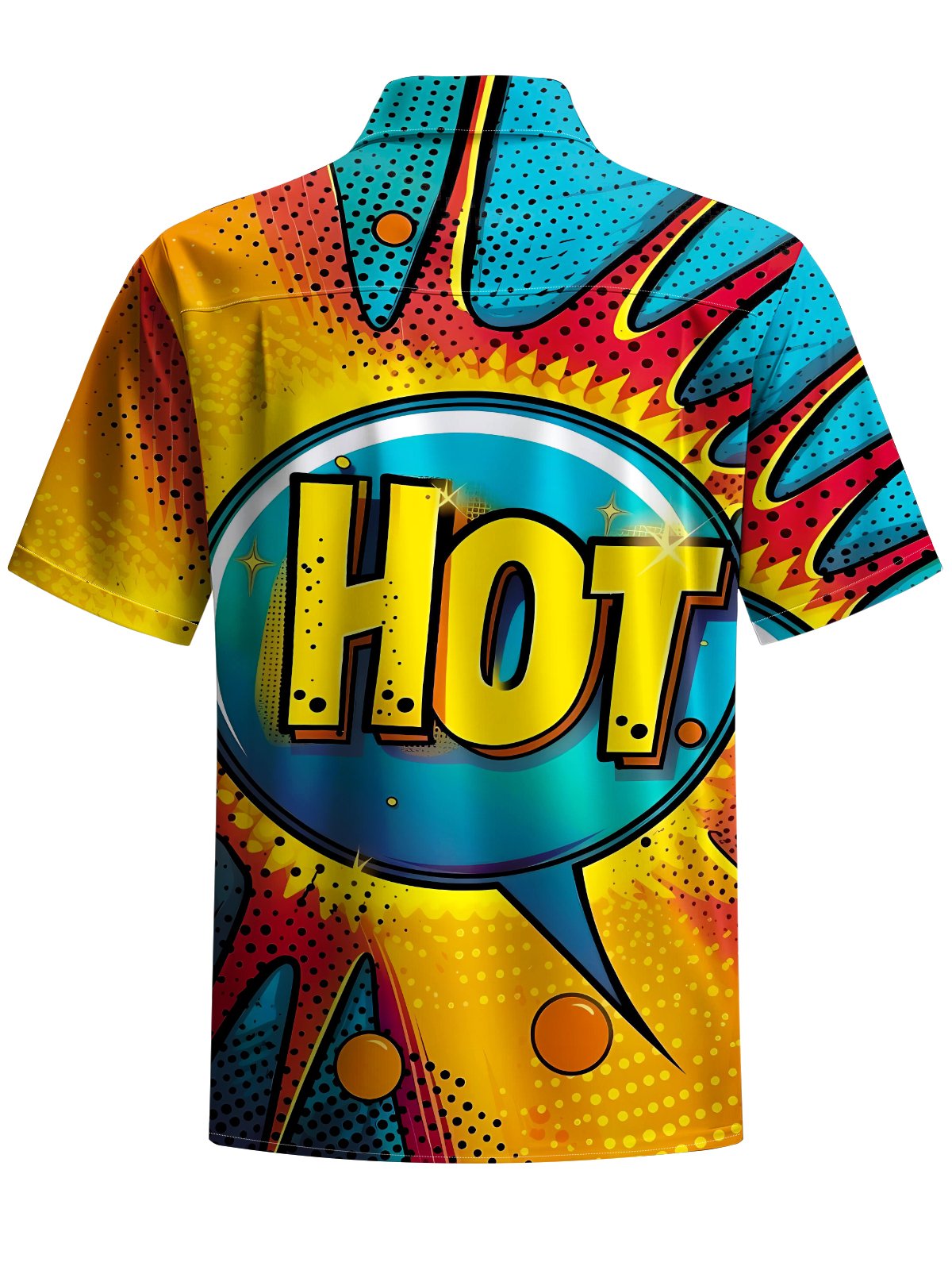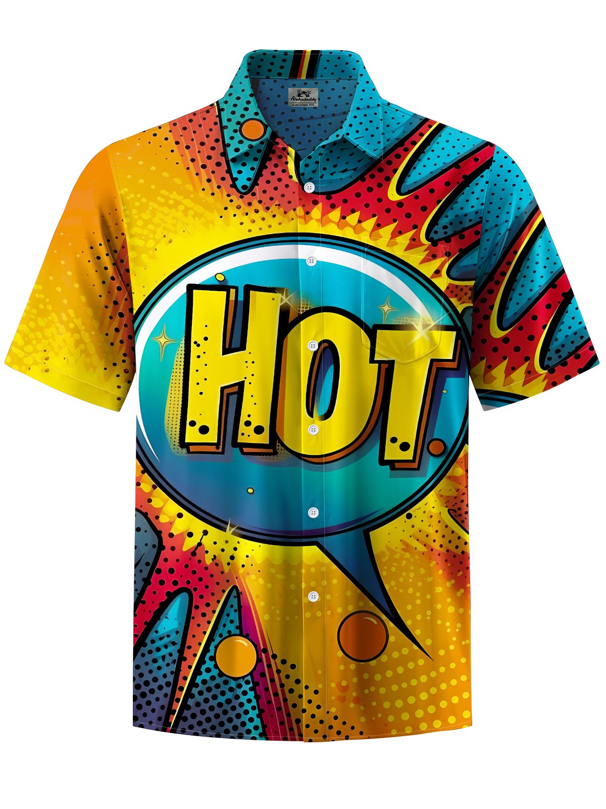 Alohadaddy® Casual Graffiti Lettering Print Art Chest Pocket Men's Short Sleeve Shirt Big & Tall