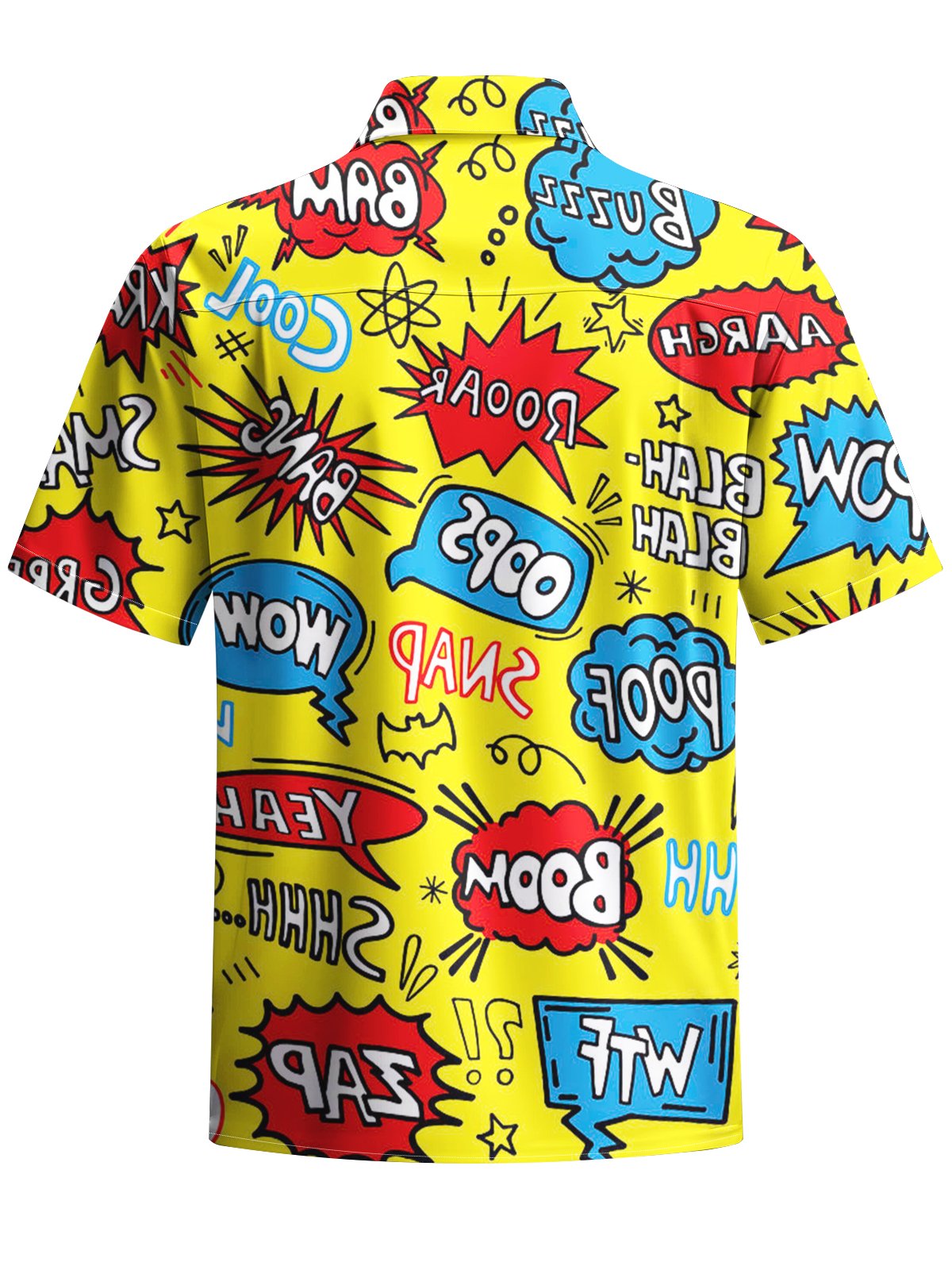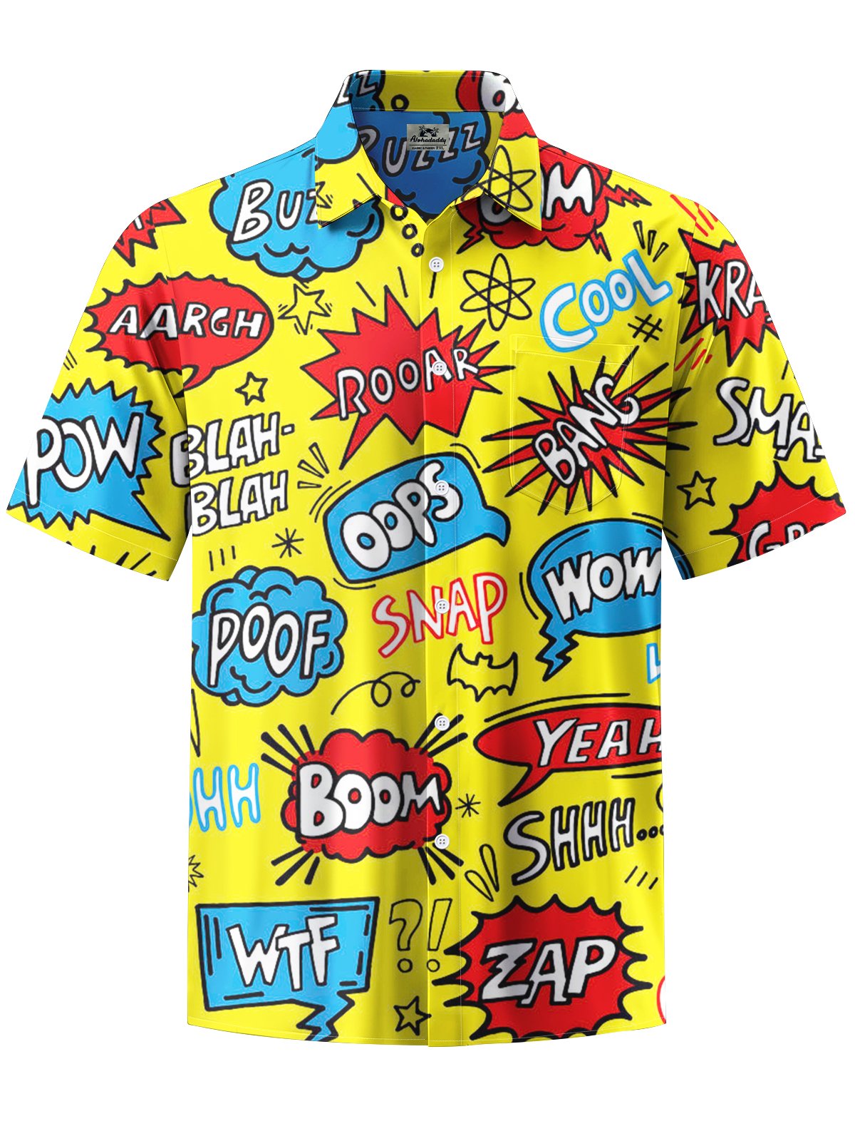 Alohadaddy® Casual Lettering Art Print Chest Pocket Men's Short Sleeve Shirt Big & Tall