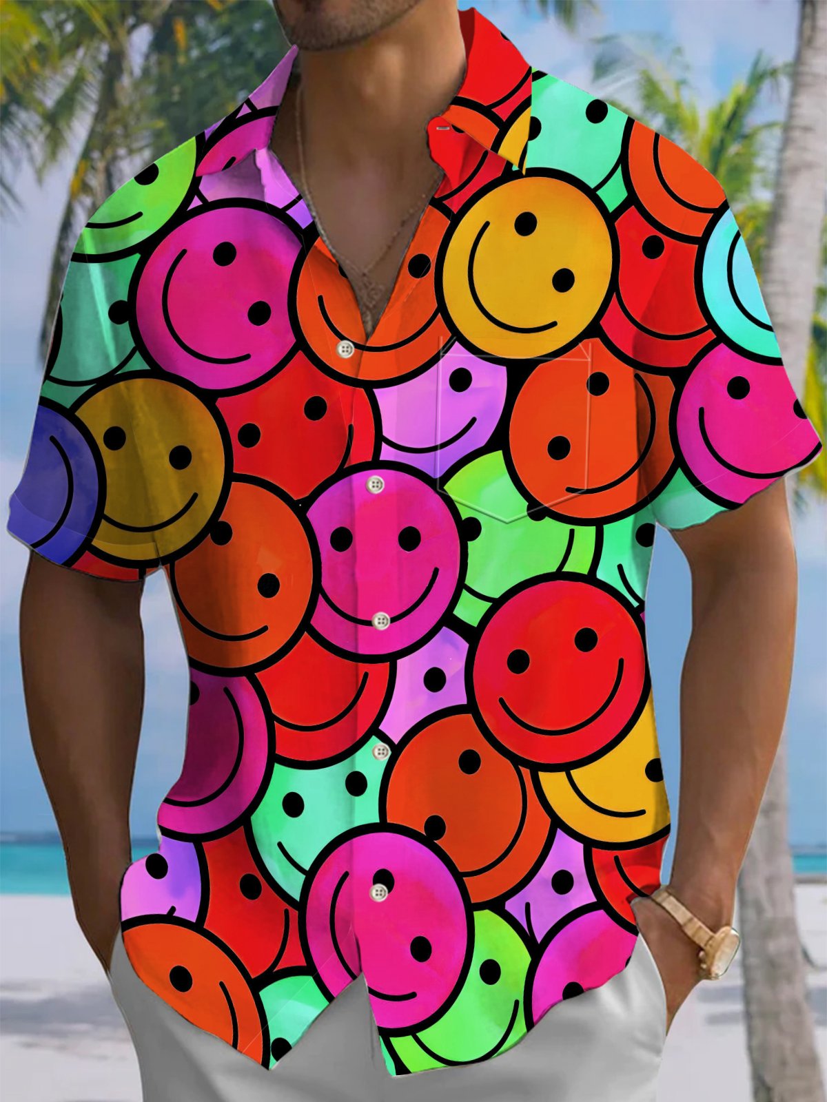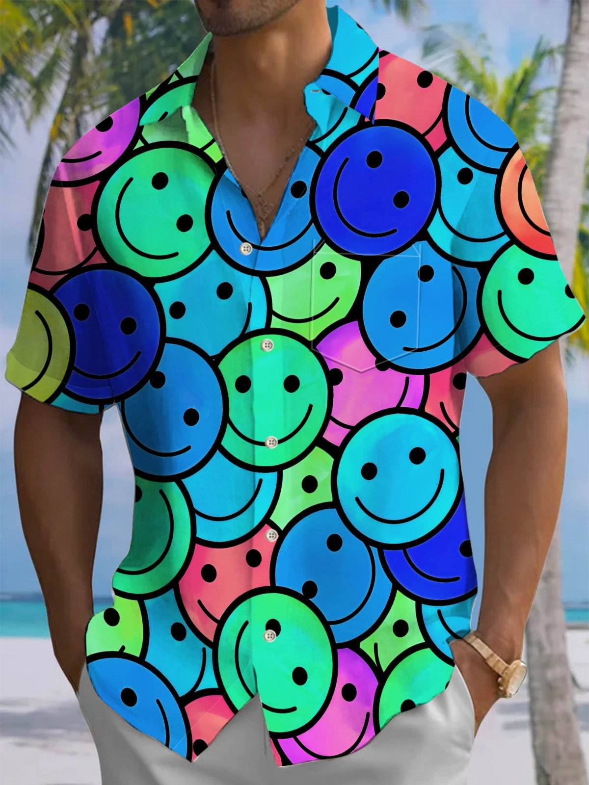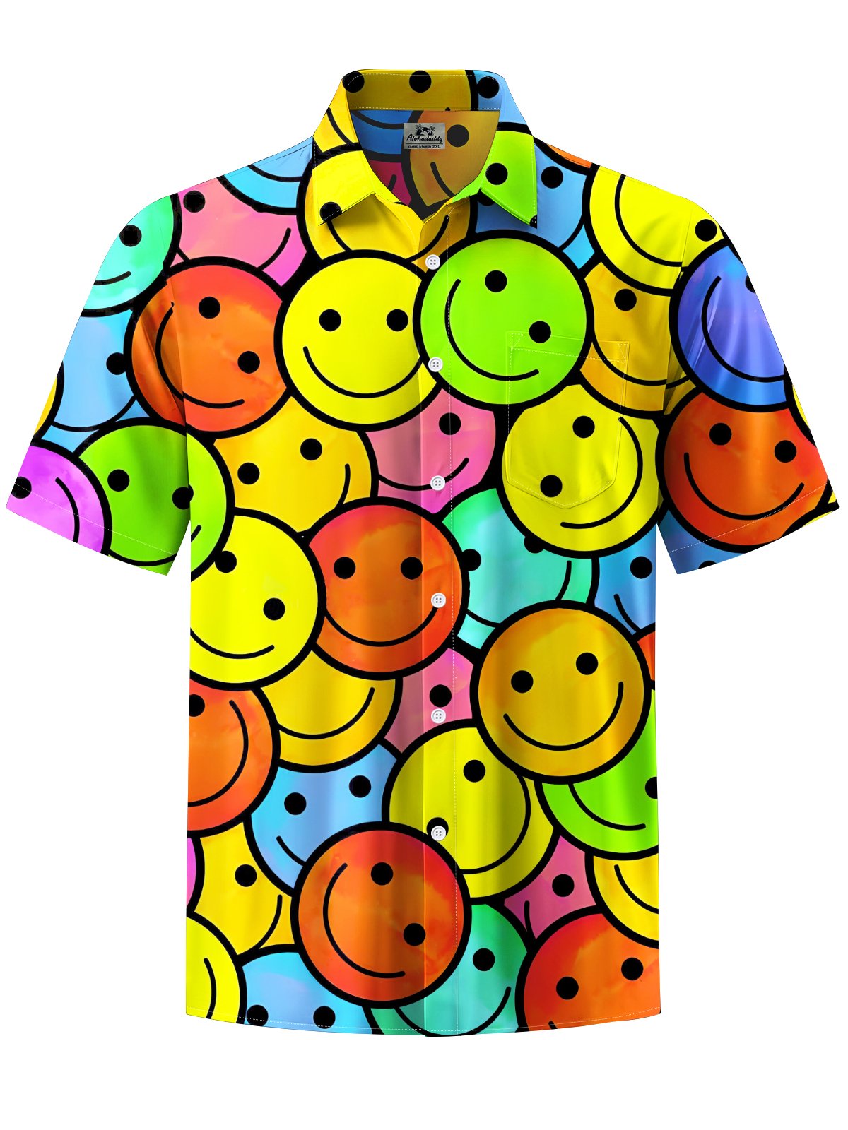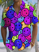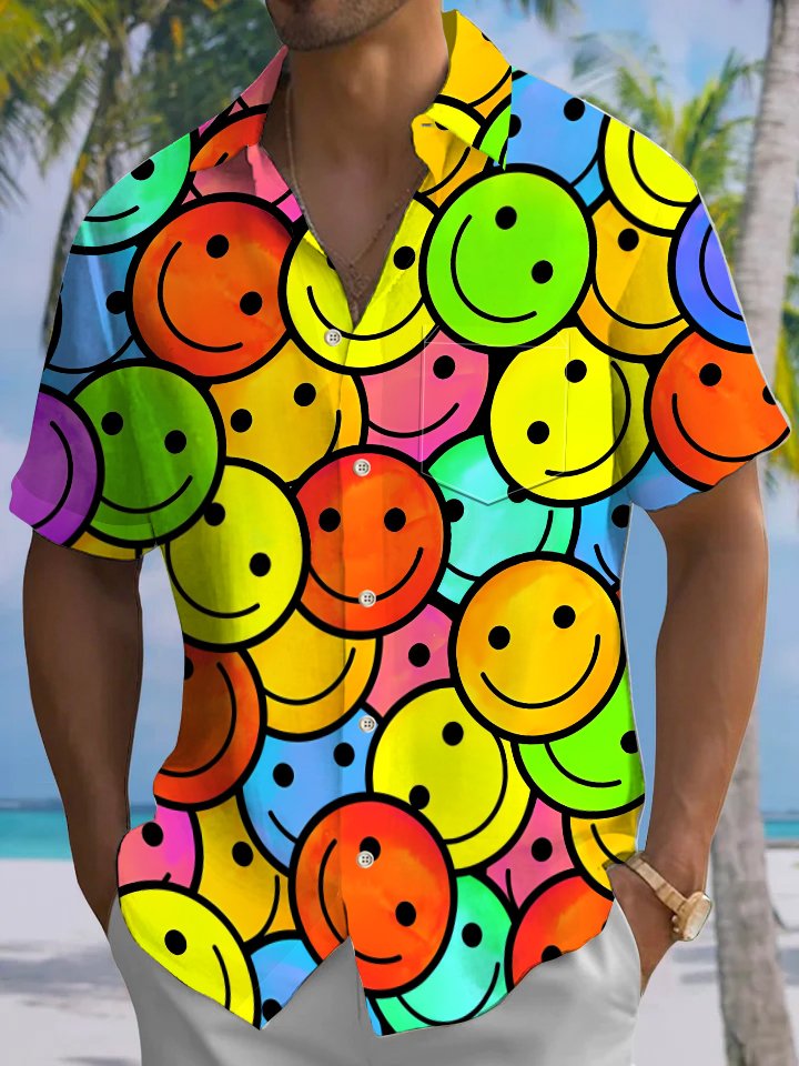 Alohadaddy® Casual Smiley Face Printed Chest Pocket Men's Stretch Short Sleeve Shirt Big & Tall