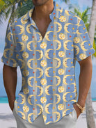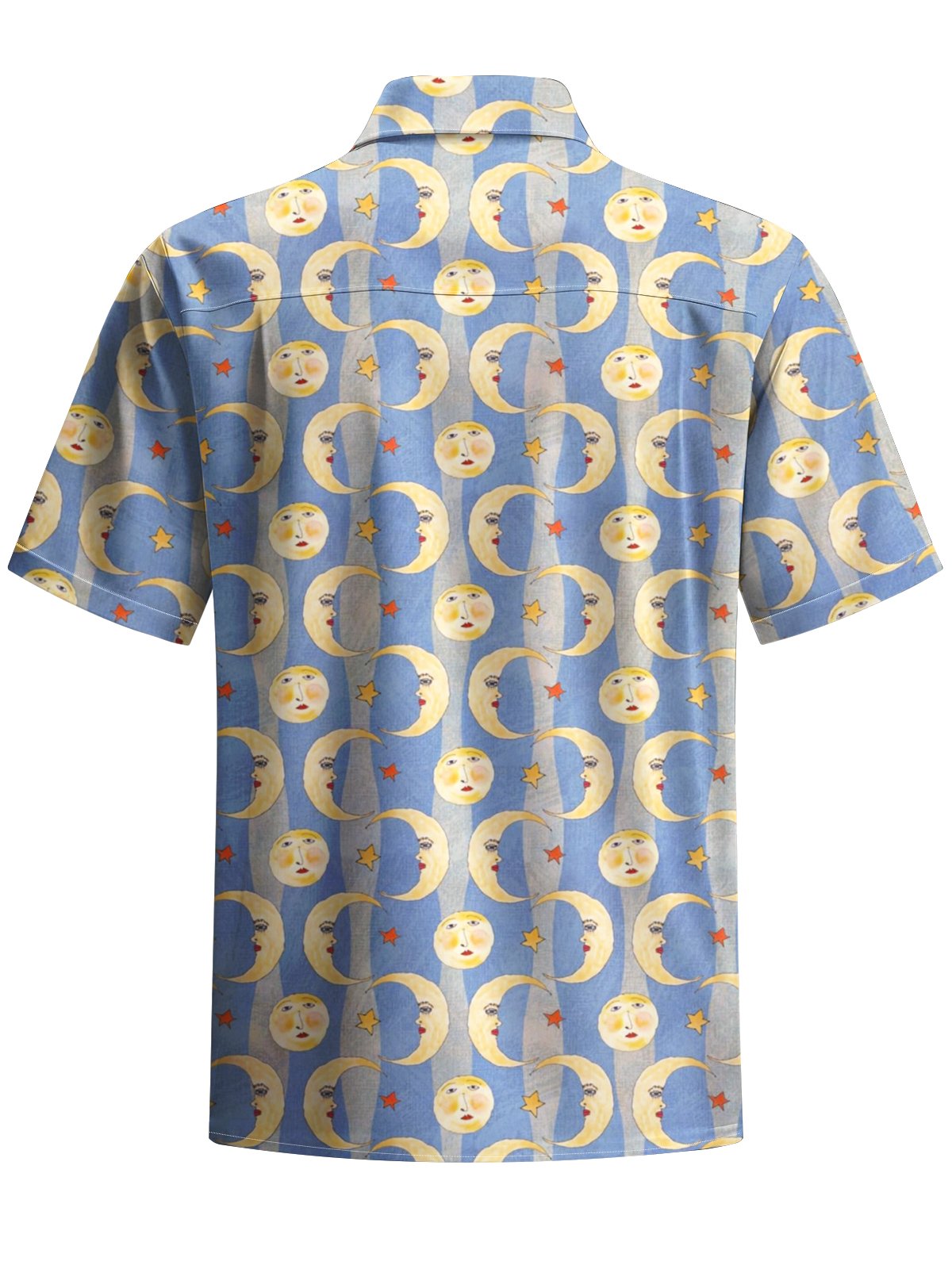 Alohadaddy® Casual Stripe Moon Print Pocket Men's Stretch Short Sleeve Shirt Big & Tall