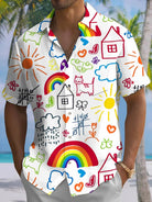 Alohadaddy® Hawaiian Cartoon Drawing Print Art Chest Pocket Men's Short Sleeve Shirt Big & Tall