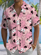 Alohadaddy® Hawaiian Cartoon Puppy Print Artwork Chest Pocket Men's Short Sleeve Shirt Big & Tall