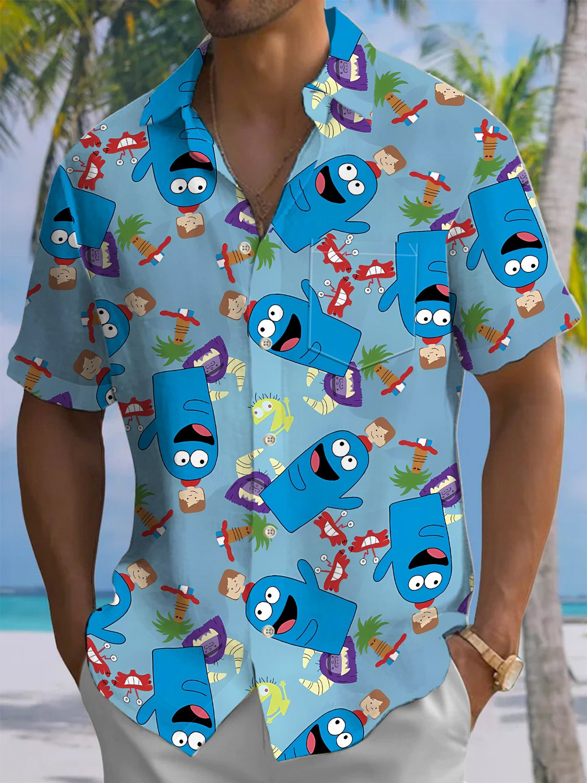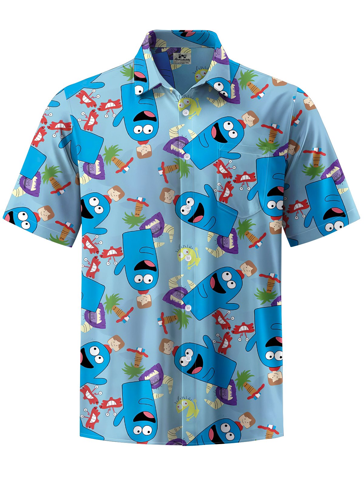 Alohadaddy® Men's Casual Cartoon Art Printed Chest Pocket Short Sleeve Shirt Big & Tall