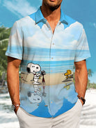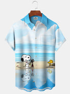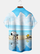 Alohadaddy Hawaiian Cartoon Print Art Button Cardigan Pocket Stretch Large Size Short Sleeve Shirt