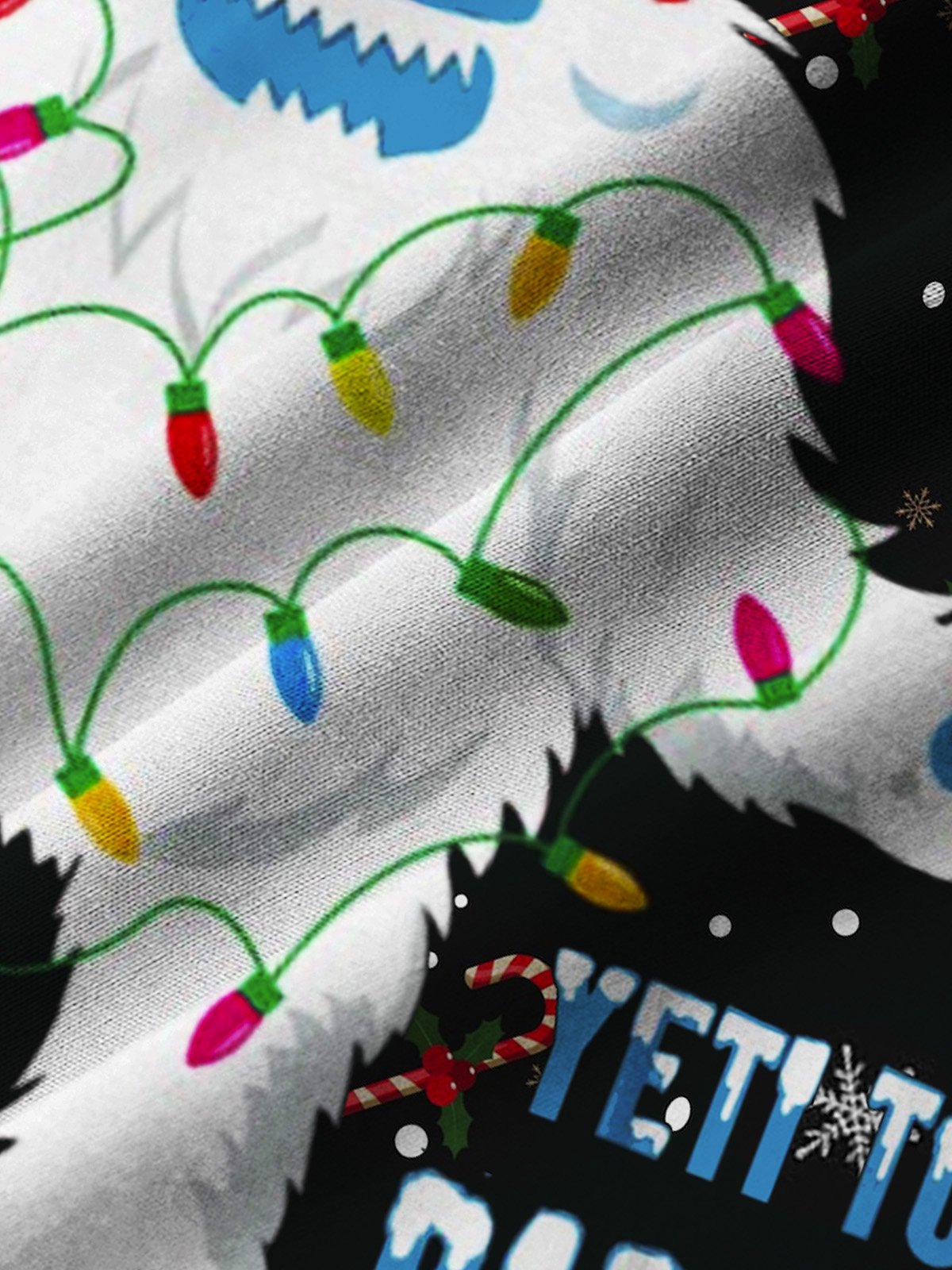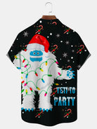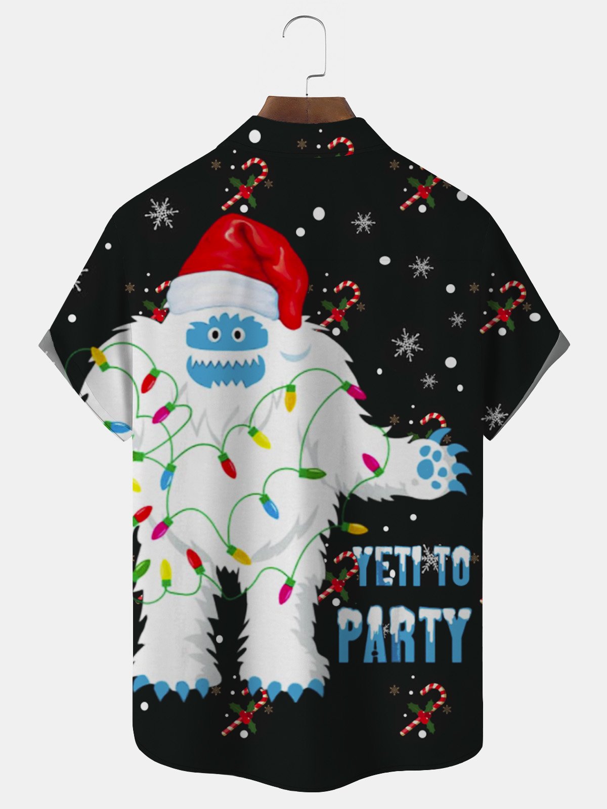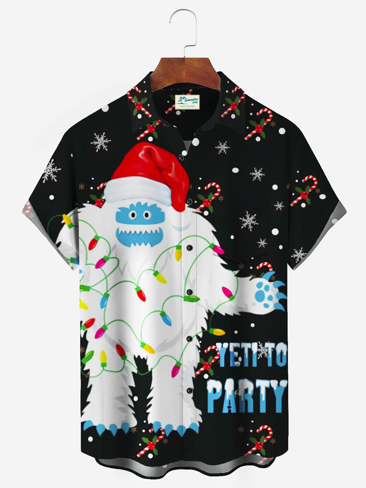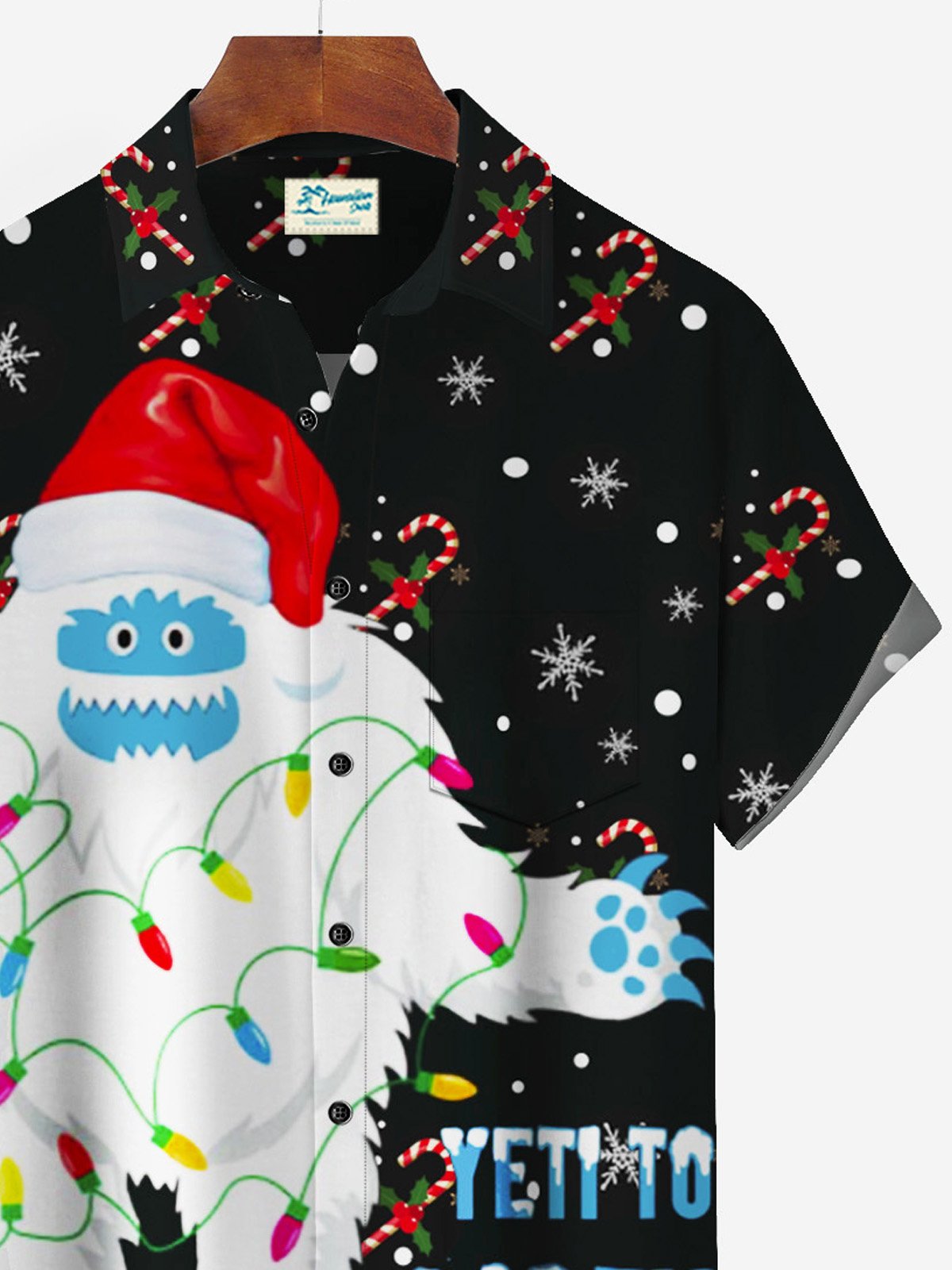 Camisas hawaianas Alohadaddy Mystery Yeti navideñas negras para hombre, camisas de botones de campamento con bolsillo Aloha divertidas y elásticas de gran tamaño