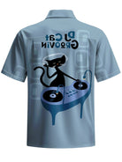 Alohadaddy® Casual Geometric DJ Cat Art Print Pocket Stretch Men's Short Sleeve Shirt Big & Tall